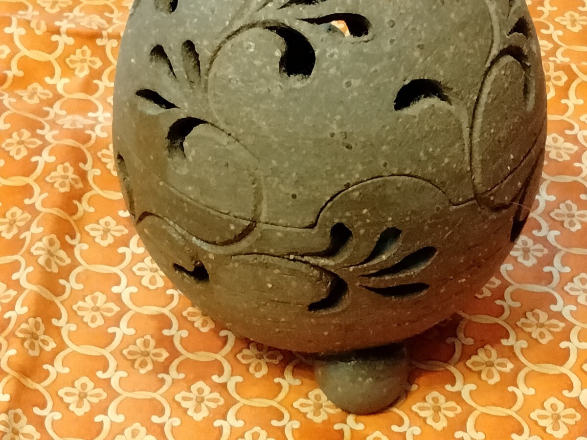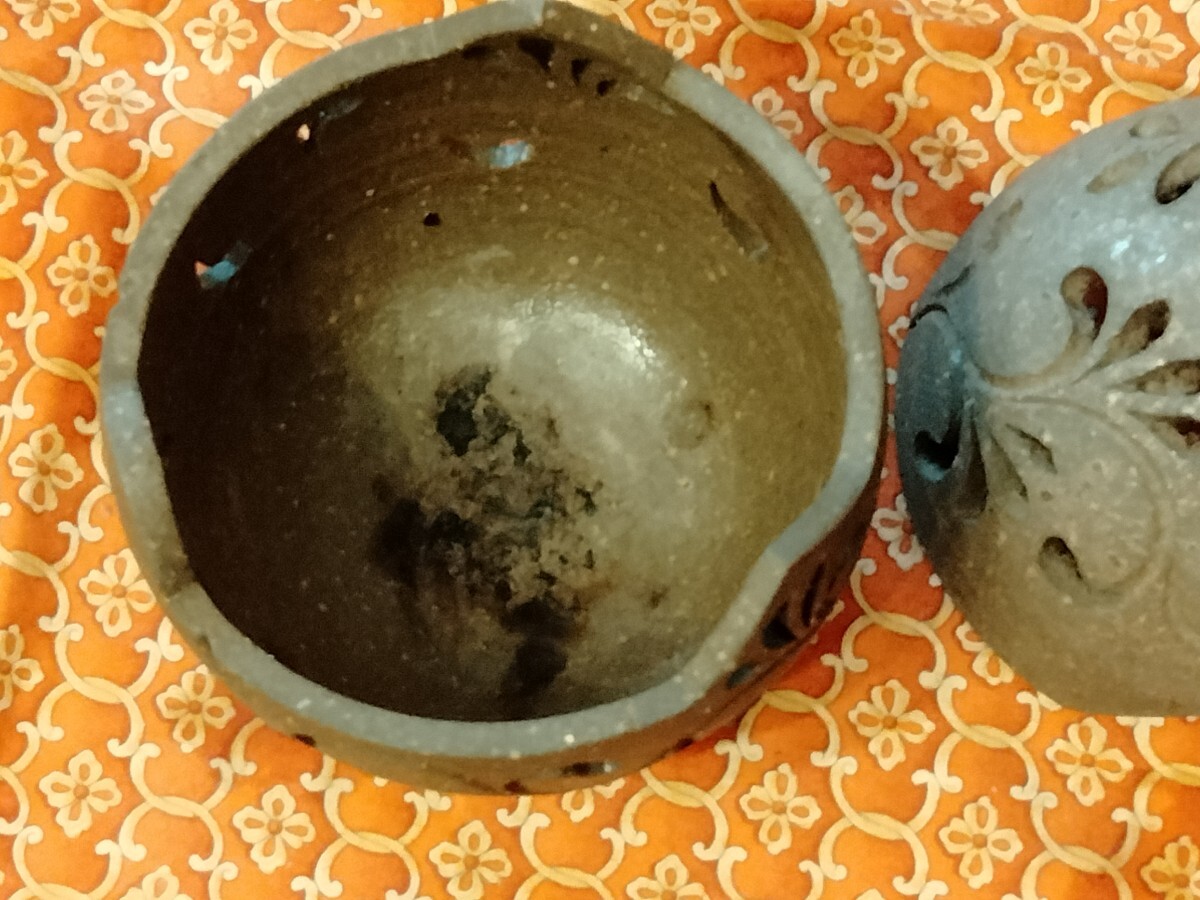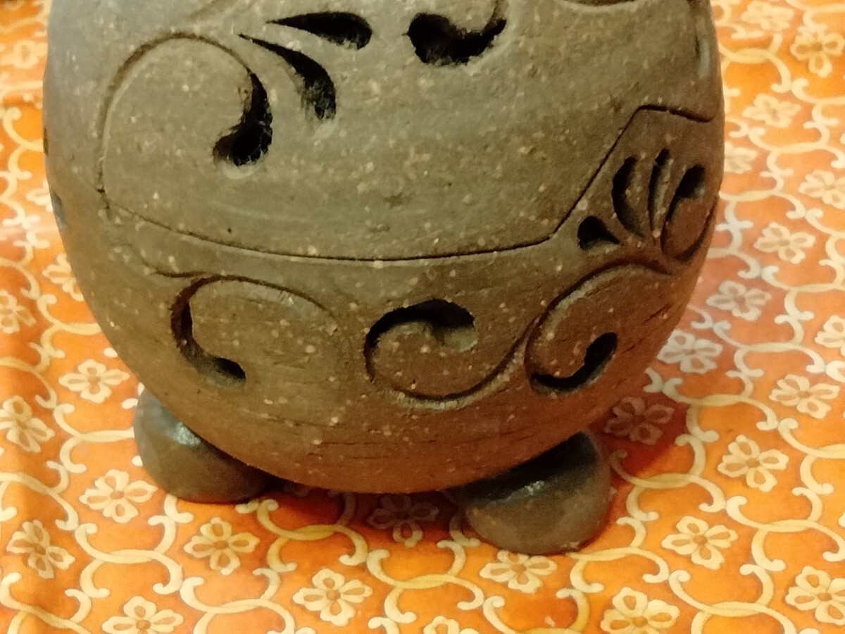 笠間焼 香炉 照明にも 香炉として使いました 工夫して小さなランプを入れると、素敵な照明になります。直径8センチ、高さ11センチ。近所の方でしたら、手渡しいたします。