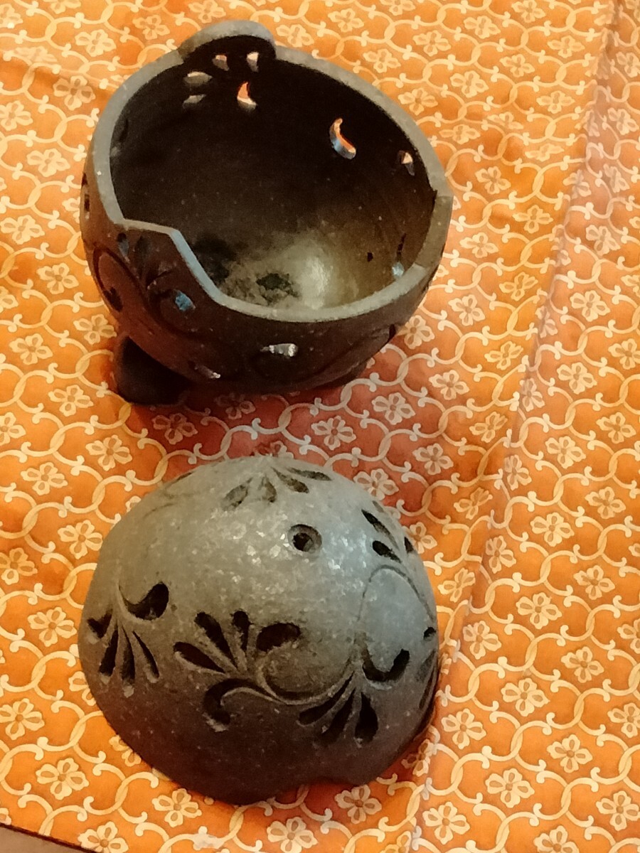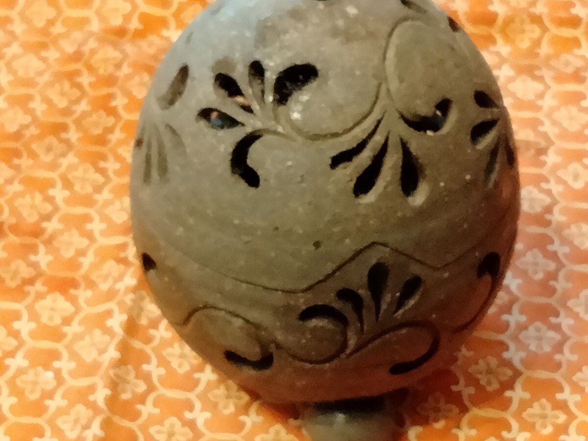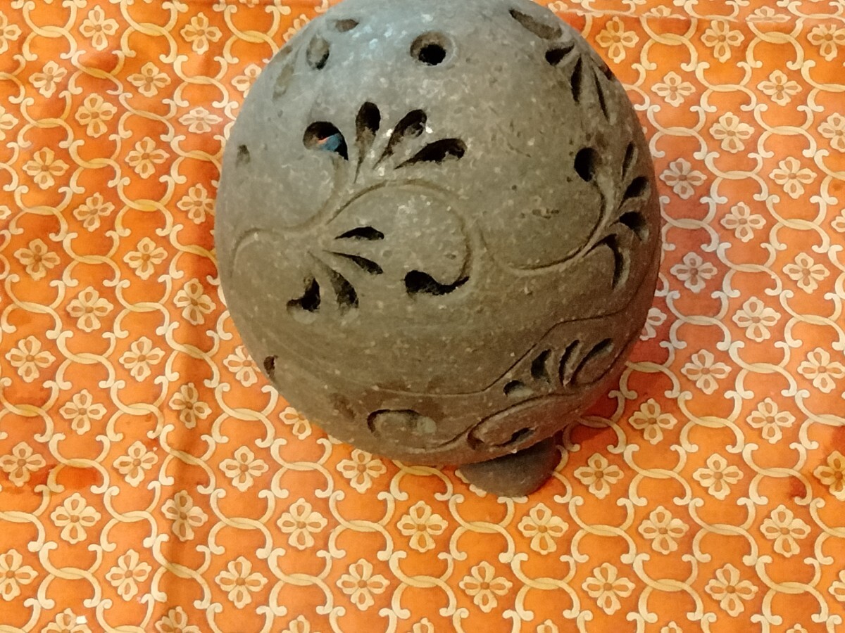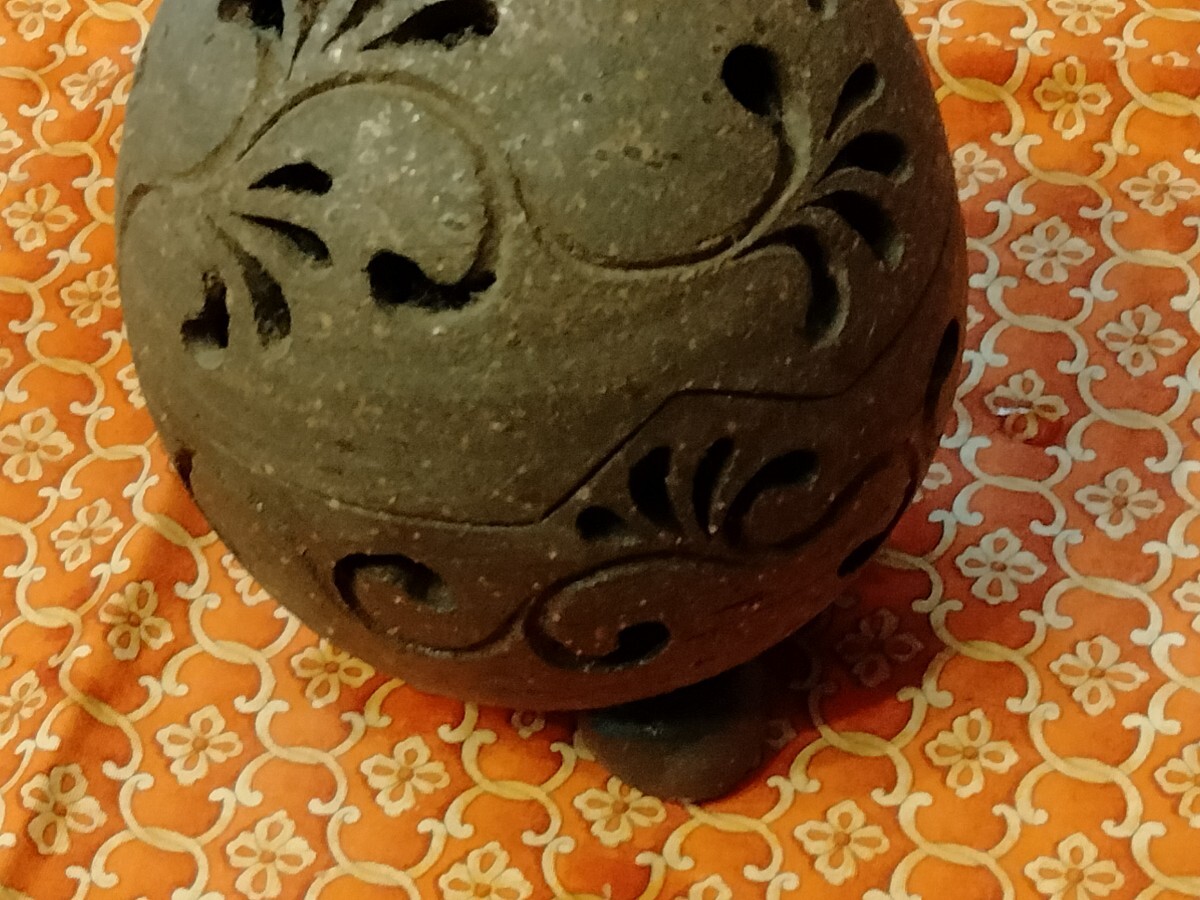 笠間焼 香炉 照明にも 香炉として使いました 工夫して小さなランプを入れると、素敵な照明になります。直径8センチ、高さ11センチ。近所の方でしたら、手渡しいたします。