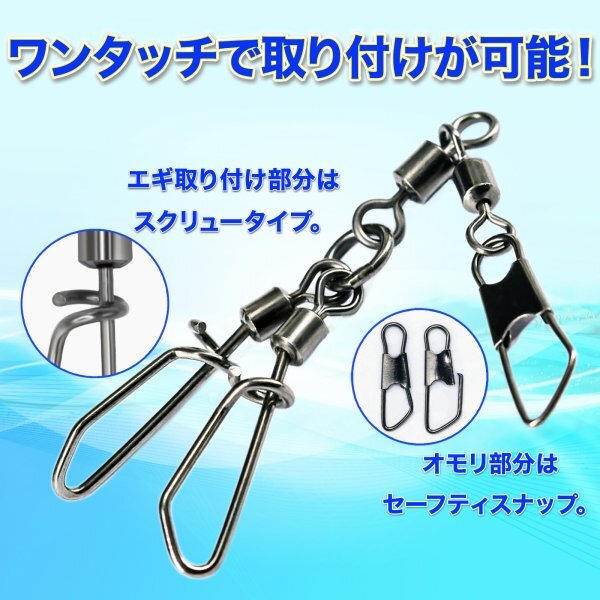 【簡単な取り付け】スクリュータイプの設計により、簡単にルアーやエギを取り付けることができます。これにより、釣りの準備時間を短縮し、すぐに釣りを始めることができます。