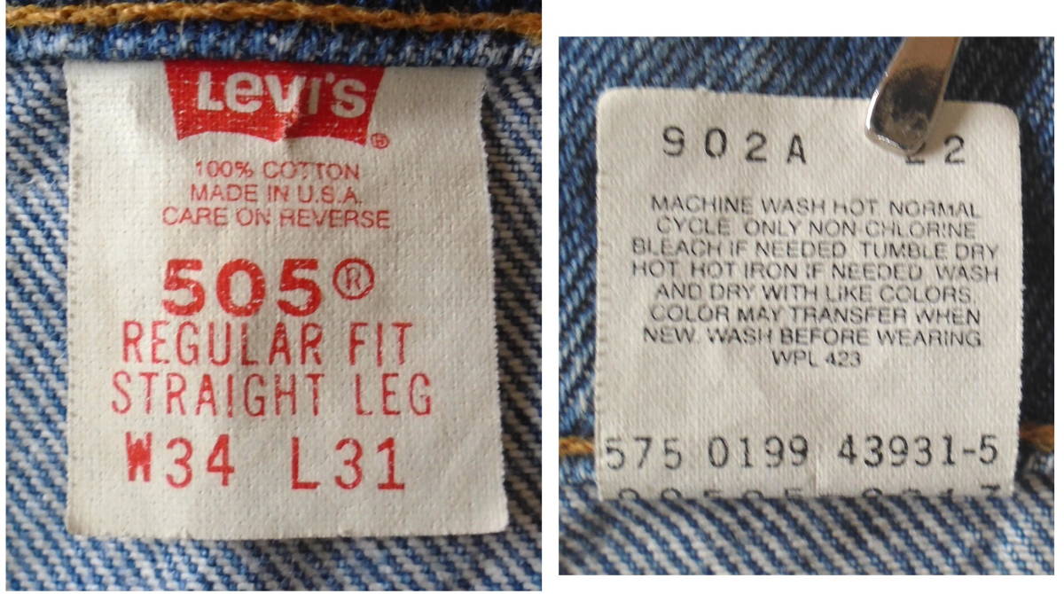 色落ち良 90年代 Levi's 505 赤タブ 米国製 (W:34 L:31) | |||