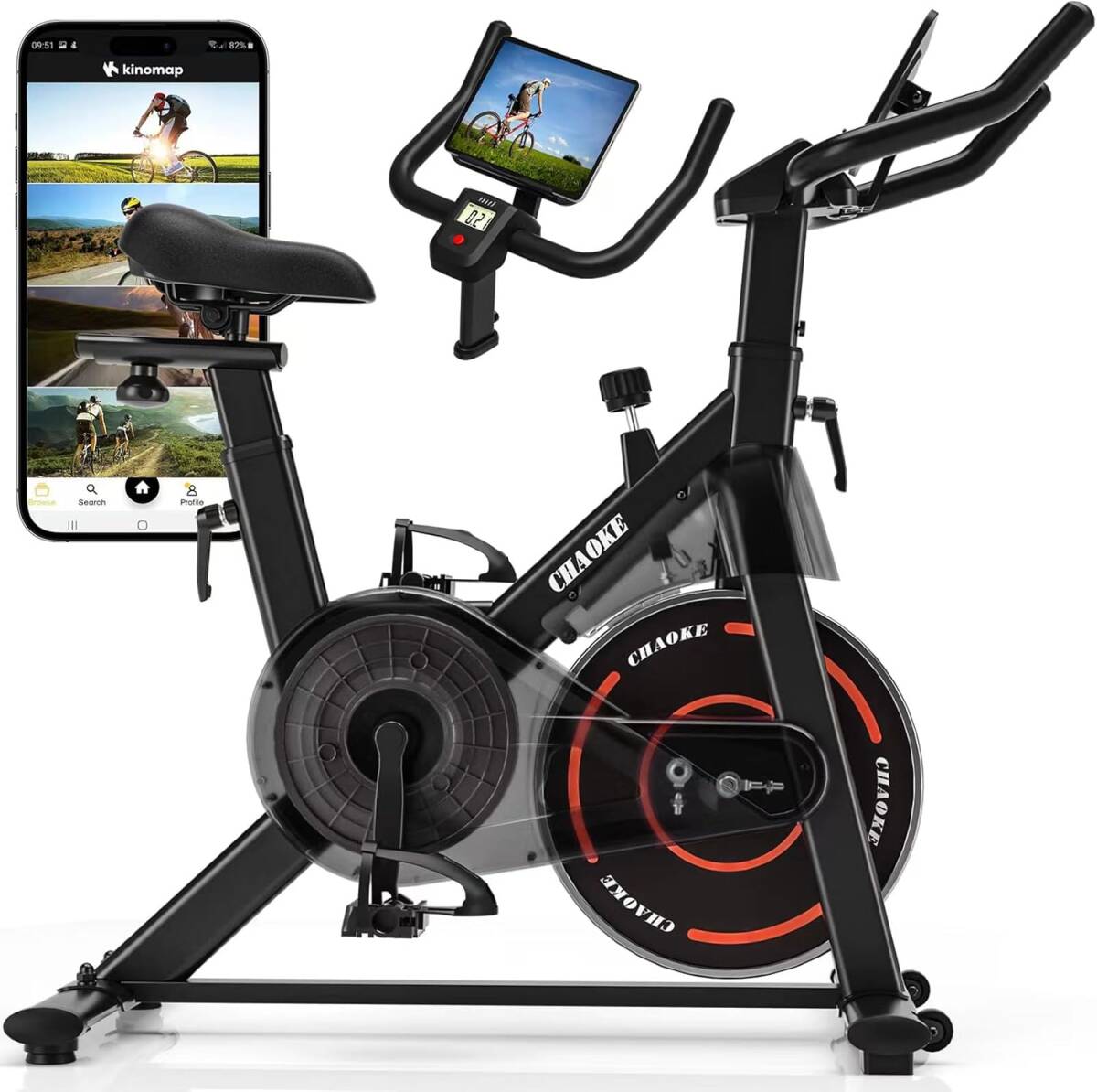レッド色 CHAOKE スピンバイク エアロバイク【ZWIFT連動/極静音/5年保証】 家庭用 ダイエット器具 組み立て簡単 連続120分