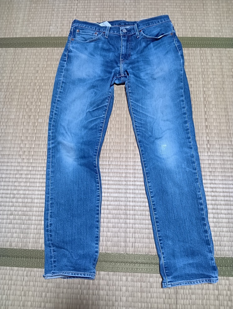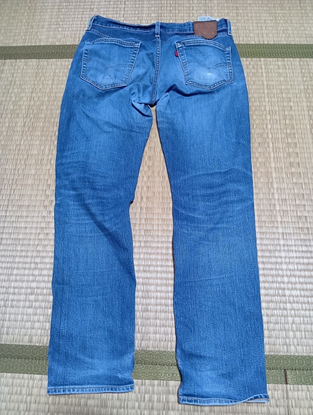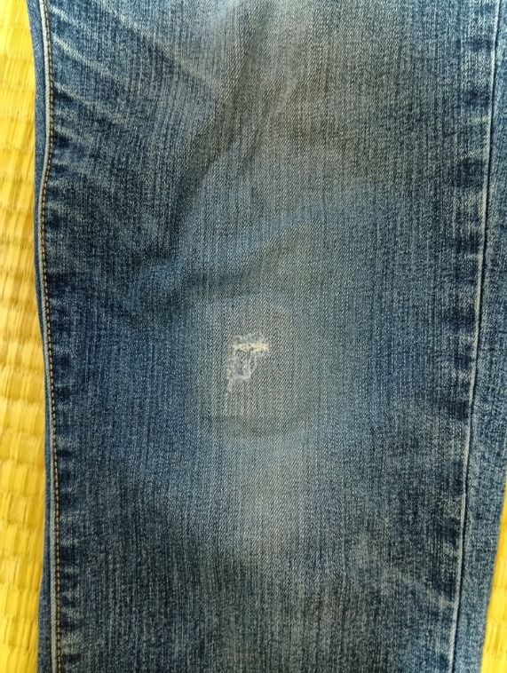 型番は不明です。右後ろポケットと左ひざの部分に補修跡があります。