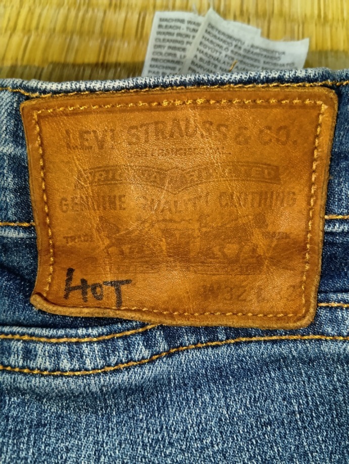 ツーホースマークの部分にある「HOT」の記載は、冬用ジーンズとしての