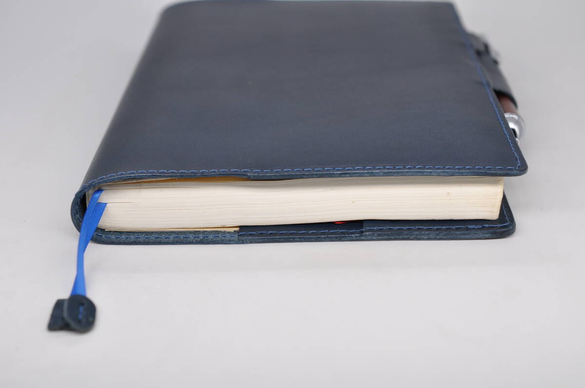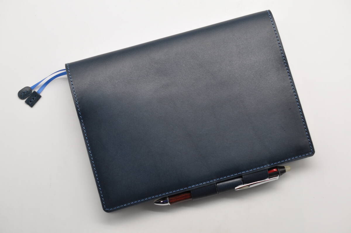 ★送料込み★手帳カバー★A5サイズ★ほぼ日手帳カズン、NOLTY A5ウィークリーなど★栃木レザー ピット本ヌメ(ネイビー)★