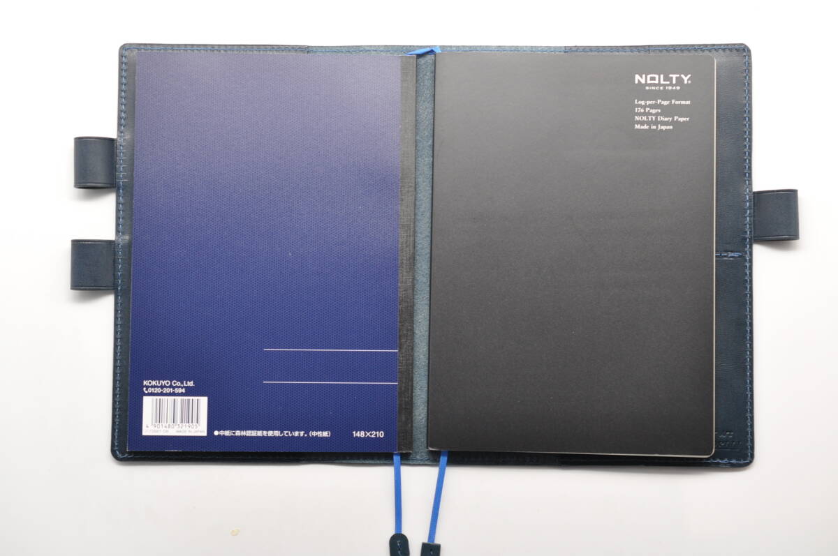 内側に、名刺入れ(カード入れ)2か所、ブックマークは2本付けています。
