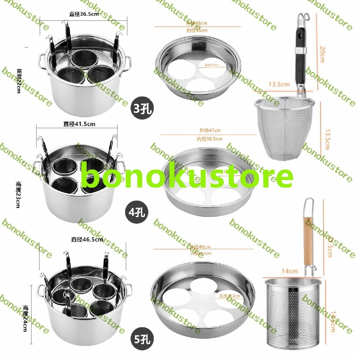 そばゆで釜 茹麺鍋セット そうめん 器 ステンレス シチューポット 防錆 耐久性 多機能 おでんのです鍋 スープ鍋、パスタ鍋、カレー鍋、シチュー鍋、おでんなど、さまざまな料理に対応し ガス火対応 飲食店家庭用 業務用 掃除が簡単 4穴 A