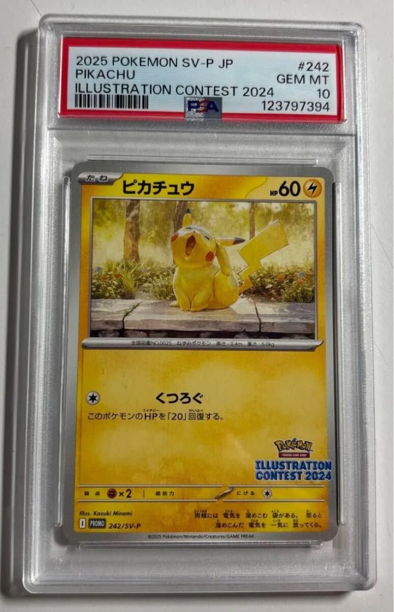 2025 POKEMON SV-P JP PIKACHU ILLUSTRATION CONTEST 2024のプロモカードで、PSA鑑定で最高評価のGEM MT 10を獲得しています。