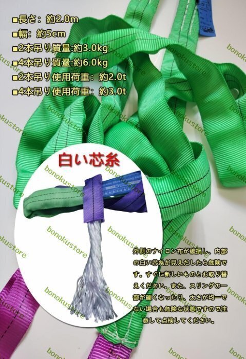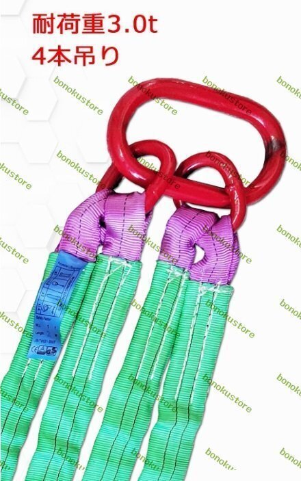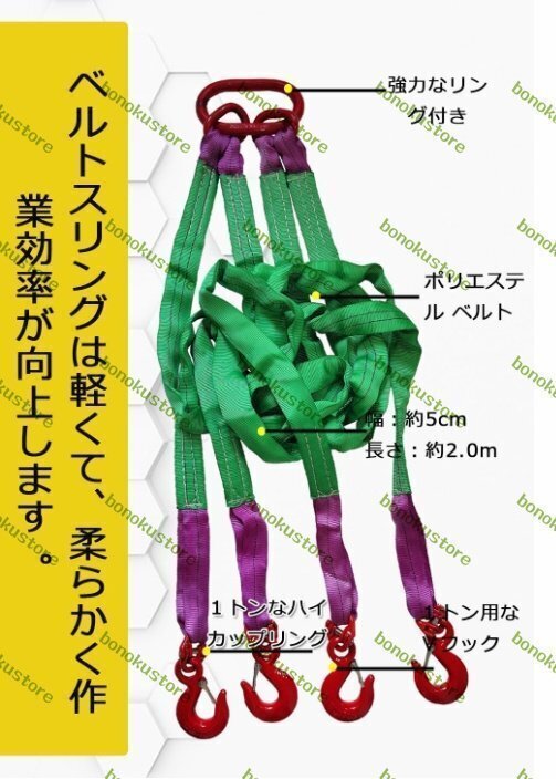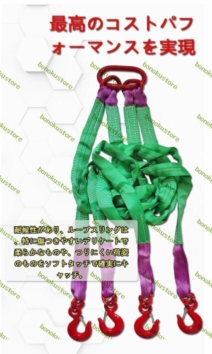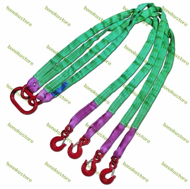 商品詳細★状態:新品未使用カラー: 画像通り【4本吊り ベルトスリング】素材:ポリエステル 合金鋼製 長さ:約2.0m ベルト幅:約5cm 4本吊りスリング使用荷重:約3t 質量:約6kg【玉掛け作業が楽に】このベルトスリングは軽くて、柔らかく作業効率が向上します。ワイヤーやチ