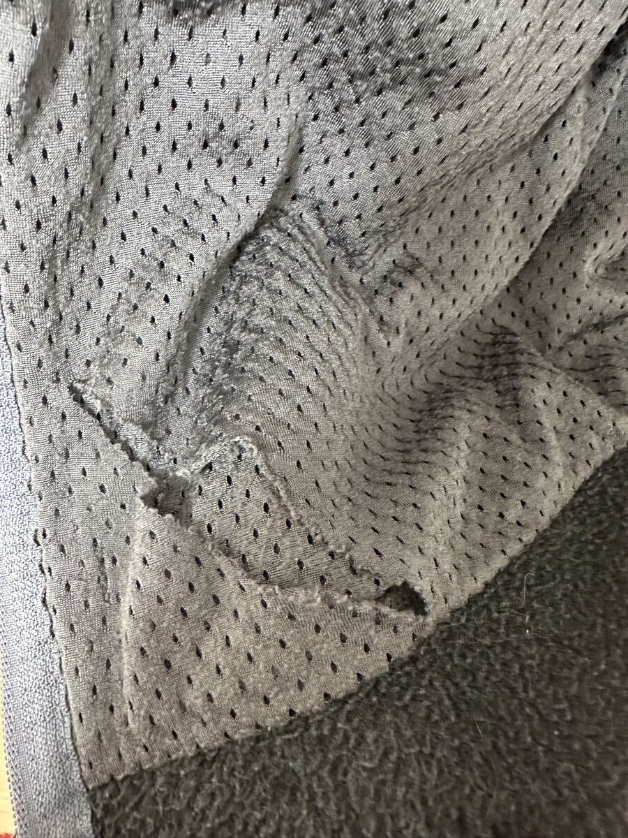 ・毛羽、褪せ、スレ、キズ、小穴、穴。