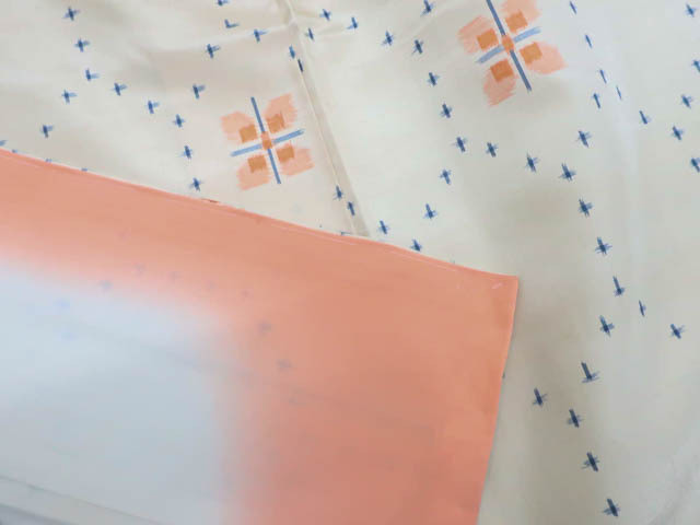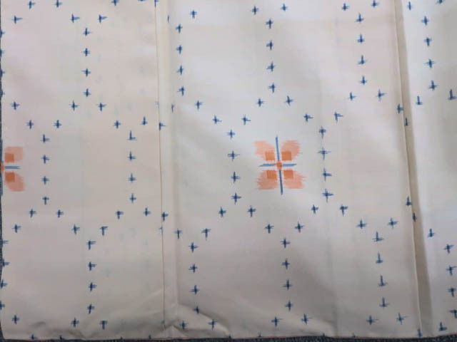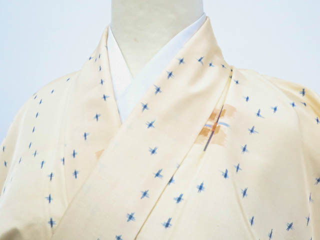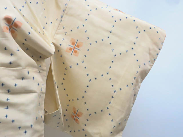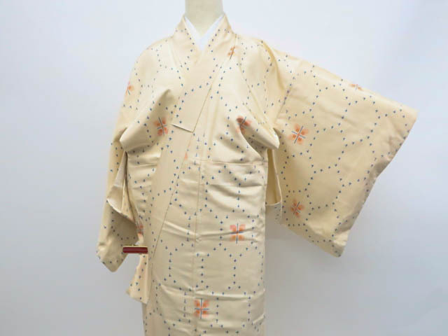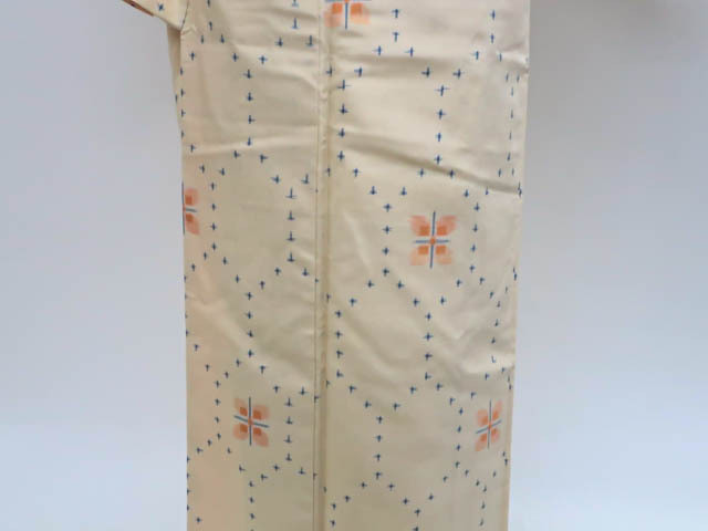リサイクル商品のため、右後身頃に糸つれ、身頃の所々に小さな薄汚れ、背や両袖に薄汚れがございますが着用可能なお品です。 地色はクリームです。 1枚目の画像が近いお色かと思われます。 素材は正絹です。 |