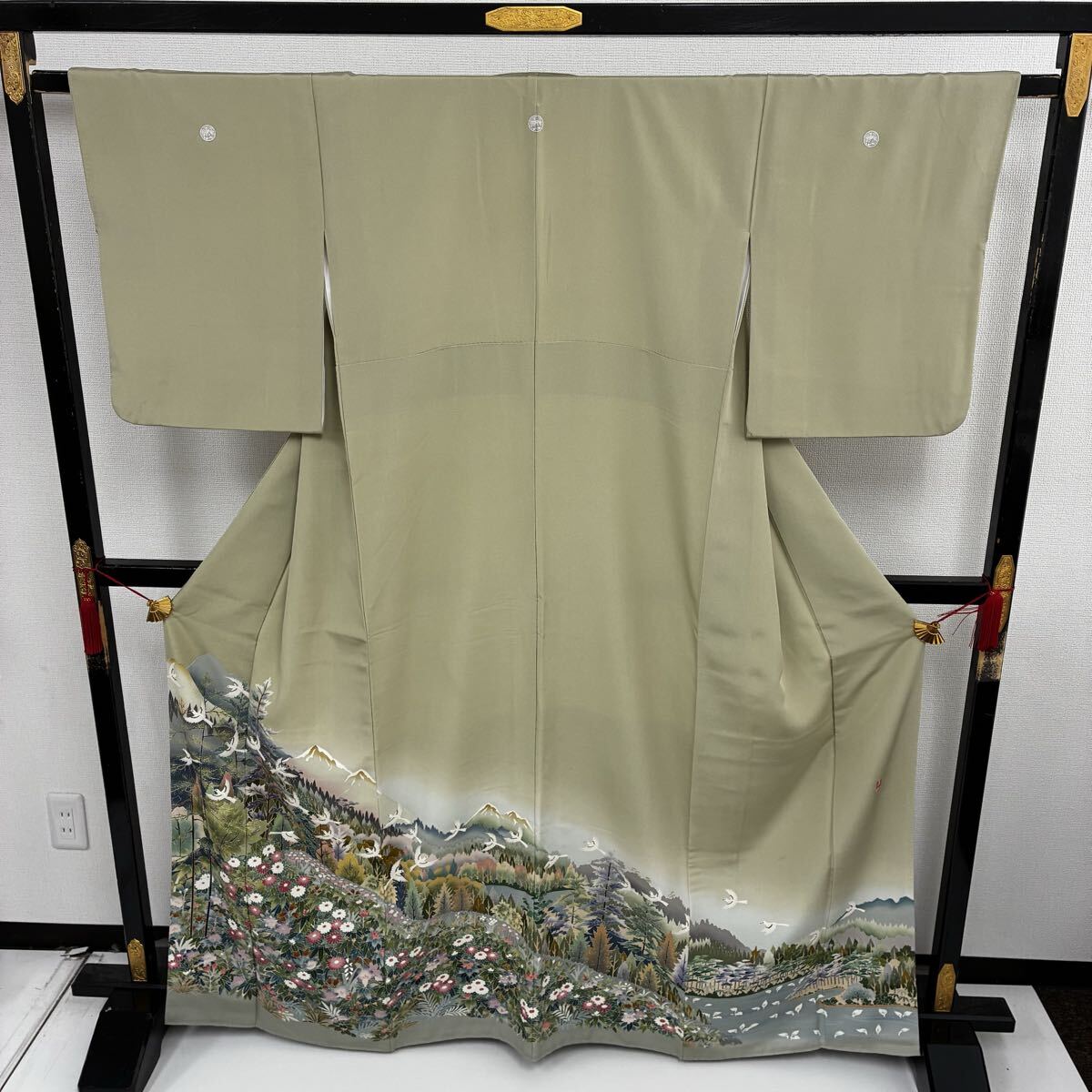 【楓】色留袖 作家物 友禅 上品な花柄 三つ紋 比翼付き 正絹 着物 KK-106