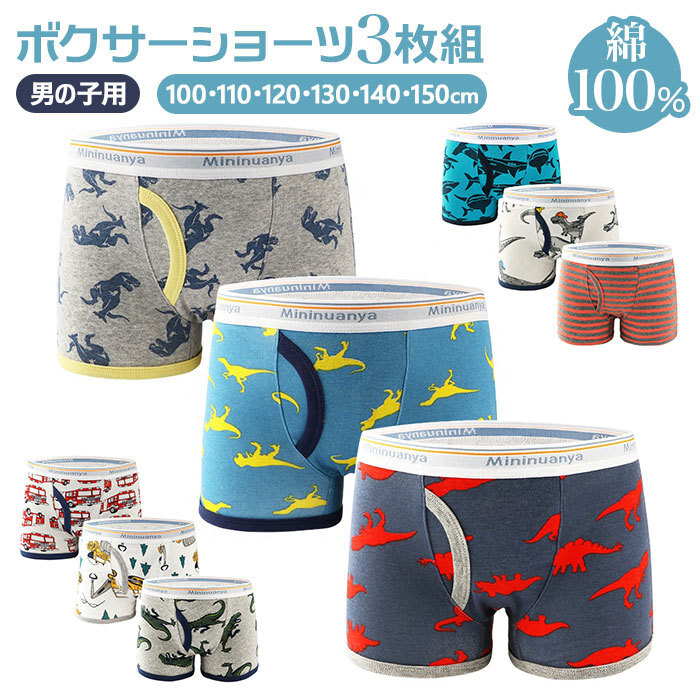 商品説明 | ・お洒落な男の子におすすめ♪キッズ用のボクサーショーツ3枚セットが登場。 ・生地には通気性・吸汗性・伸縮性に優れたコットン100%素材を使用。デリケートなお子さまのお肌にも優しい肌ざわり。 ・ウエスト部分には圧迫感のない幅広ゴム、裾部分にはゴムのような伸縮性のある弾性糸を採用。 ・クロッチ部分は2重構造。お尻に食い込みにくいデザインになっているので履き心地も快適。 ・毎日のお洗濯替え用に、何枚あっても嬉しい! |