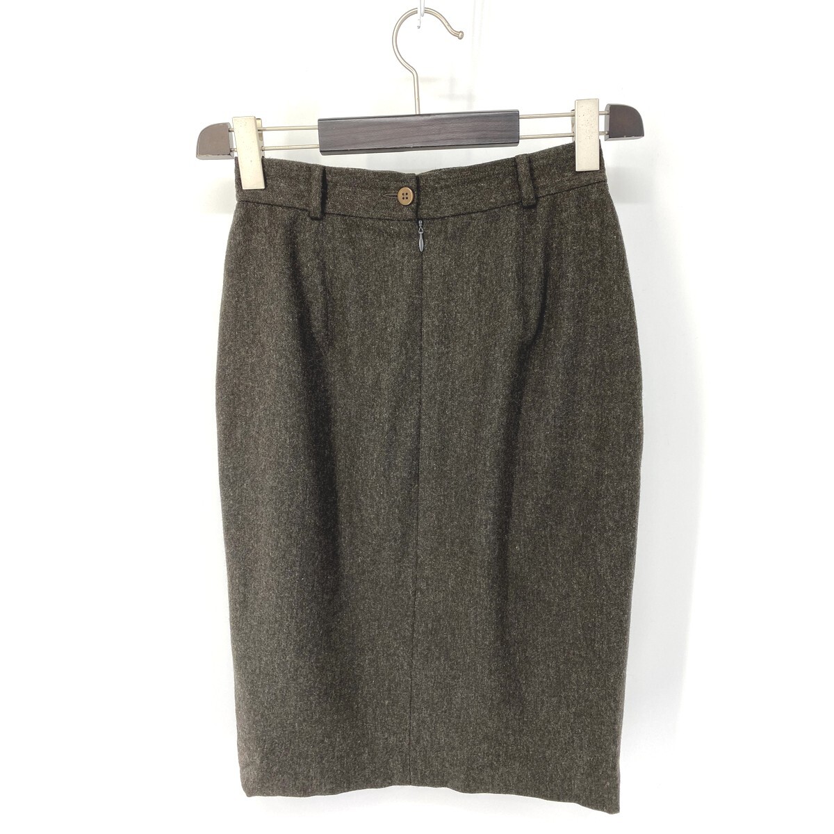 A6008/美品 春夏 GIORGIO ARMANI アルマーニ 黒タグ ウール カシミヤ 無地 タイト ペンシル 膝丈 スカート 40 灰色/イタリア製 レディース