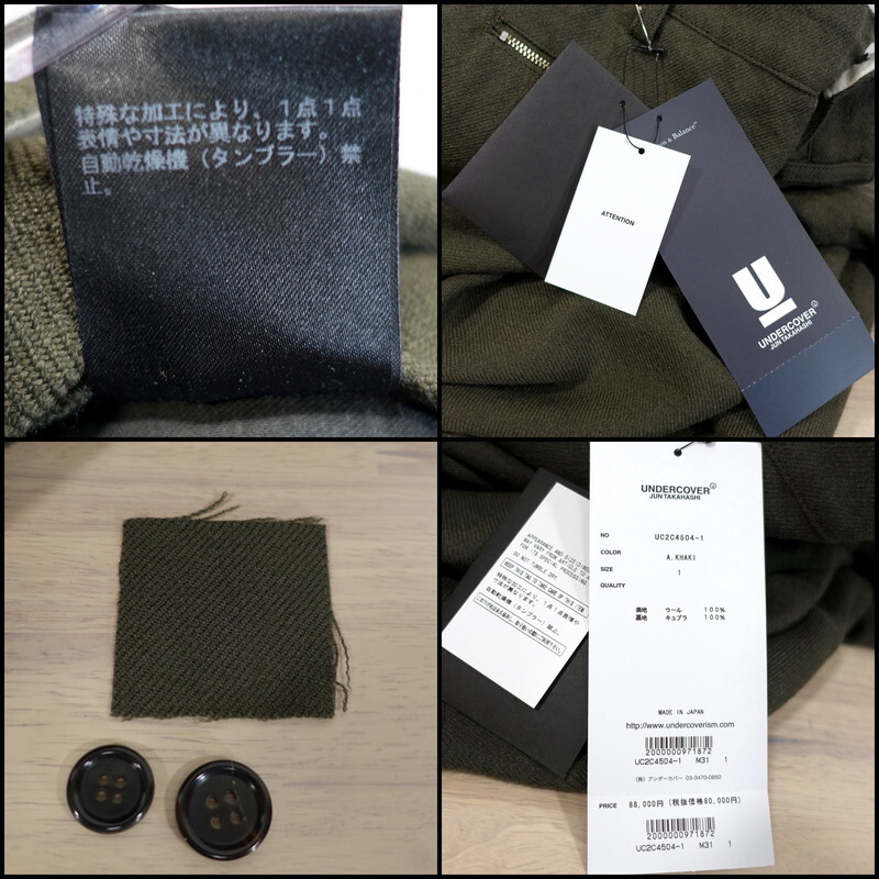 【未使用】アンダーカバー サイドジップ ウールパンツ UNDERCOVER サイズ1(S相当) カーキ