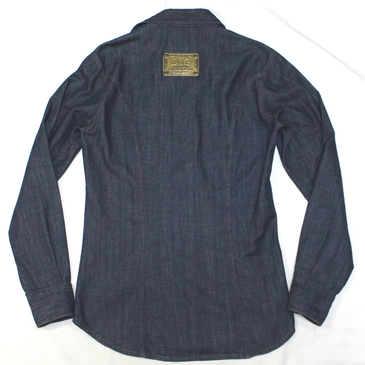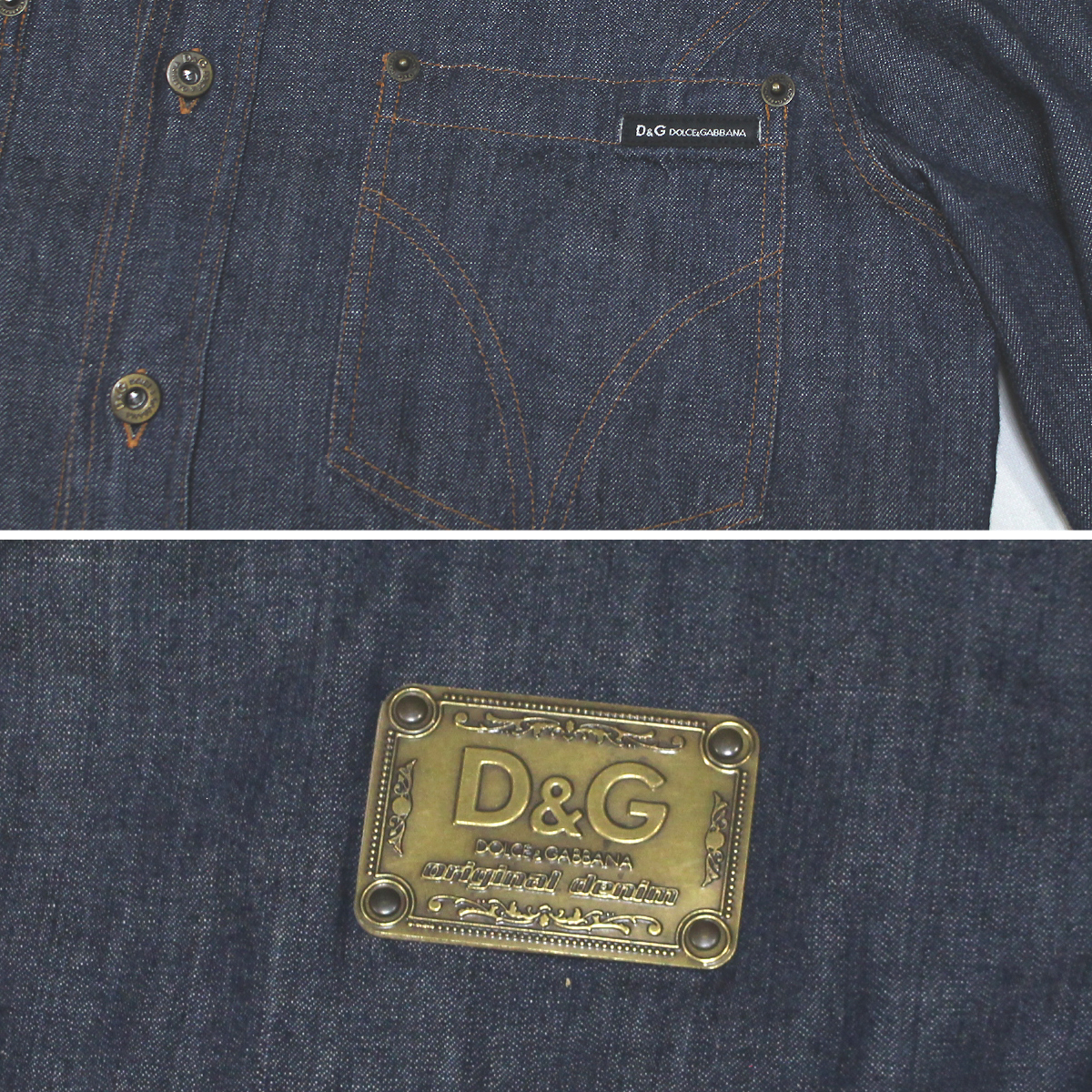 極美品 未使用級 DOLCE&GABBANA ロゴプレート付き デニム 長袖シャツ S インディゴブルー 長袖トップス ドルガバ D&G ドレスシャツ