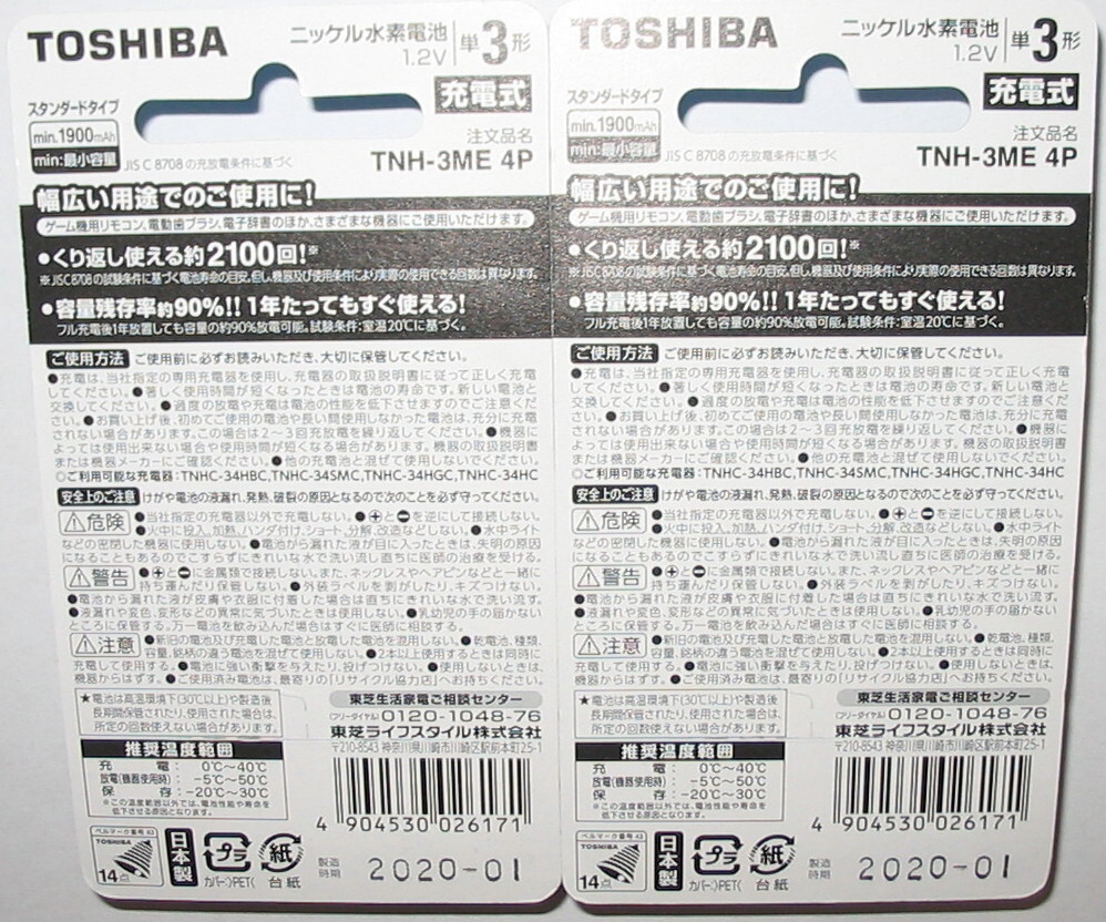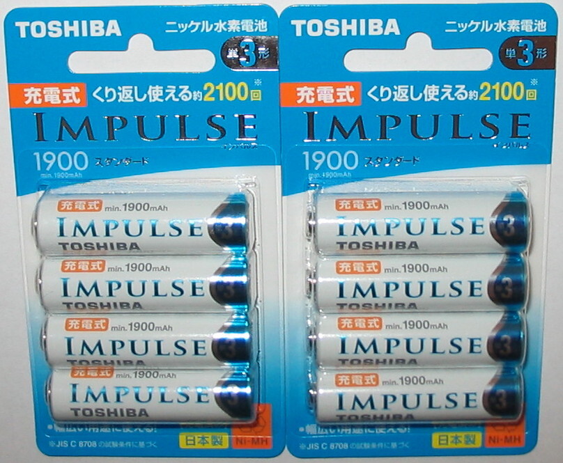 【送料無料】 日本製 ★ TOSHIBA 東芝 ニッケル水素電池 ★ インパルス TNH-3ME 4P ★ 単3形 4本入り ×2個 IMPULSE