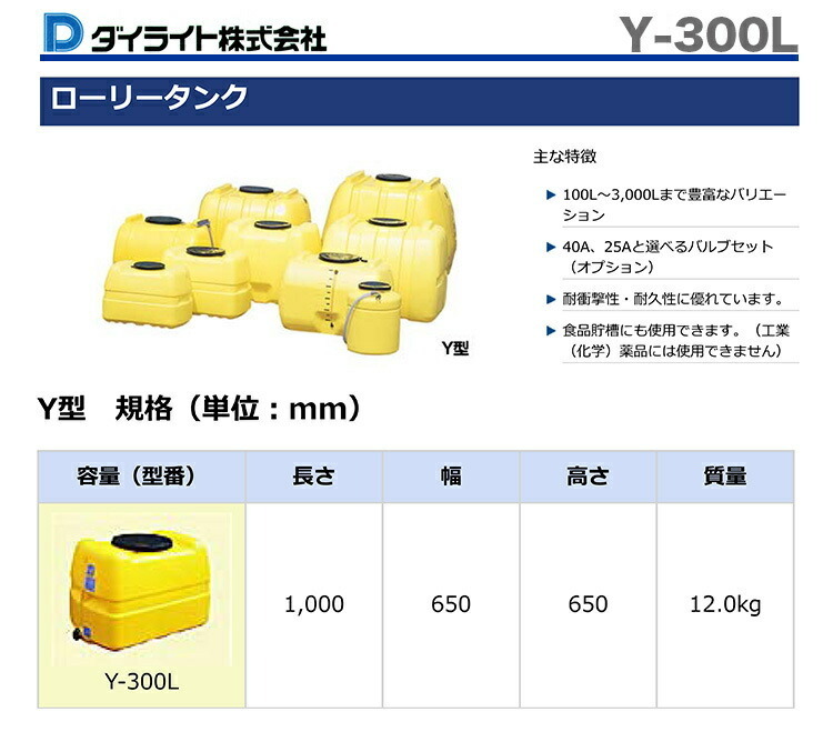 DAILITE ローリータンク Y-300L(300Lタイプ) ※こちらの商品は、「代金引換」支払を ご利用いただけません。