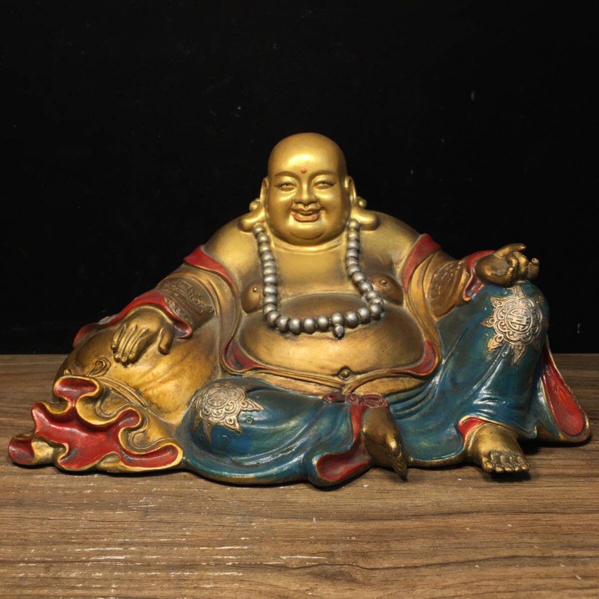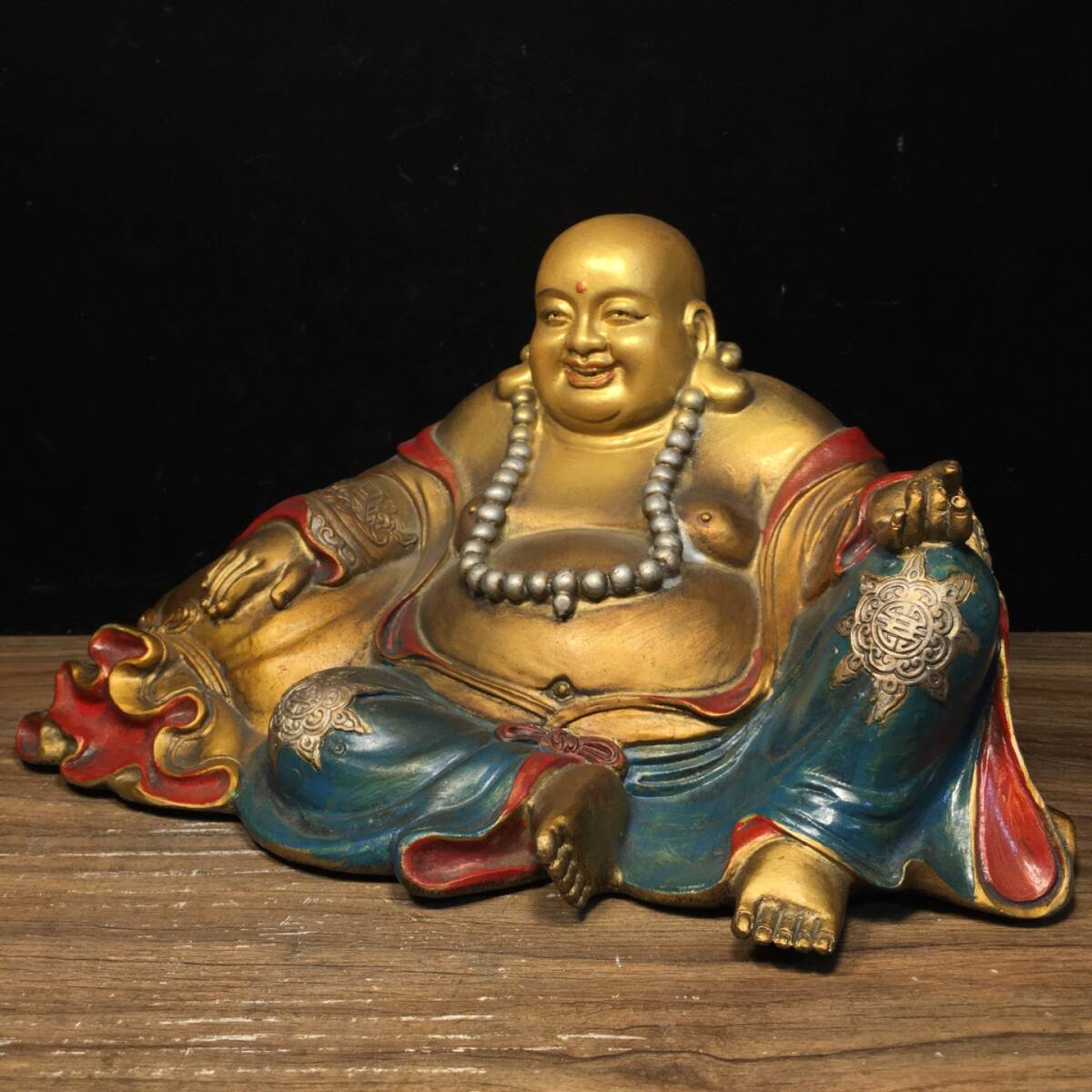 【超珍館蔵】銅製細作 彩繪 笑口常開彌勒仏像 仏像 宗教 置物 賞物 古賞物 古董品 古美術品 時代物 旧家蔵出 稀少珍蔵品