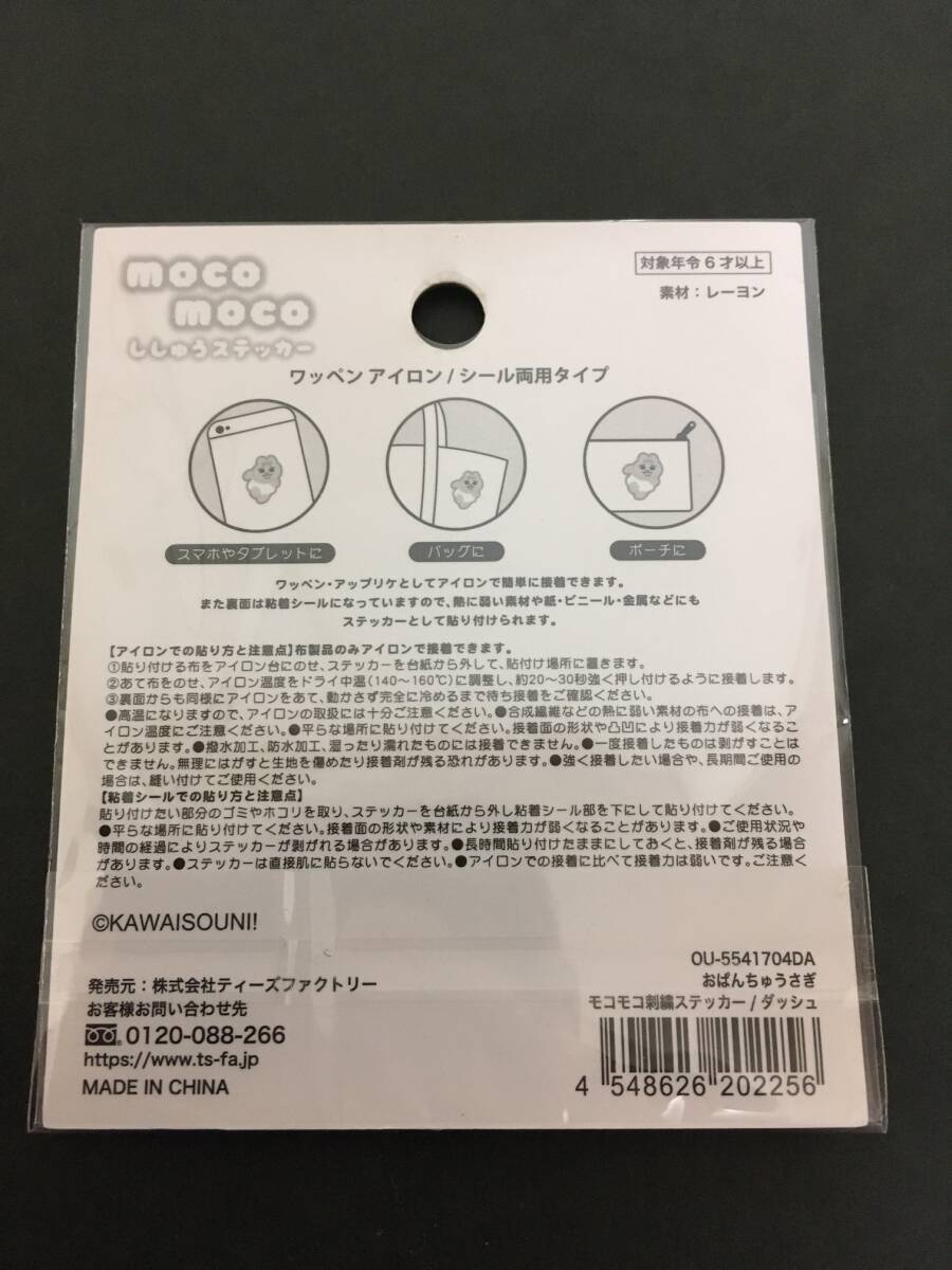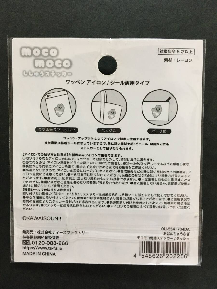おぱんちゅうさぎファンの方♪モコモコ刺繍ステッカー、とても可愛いですよ☆