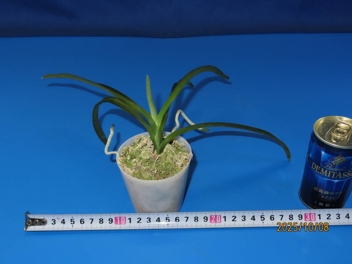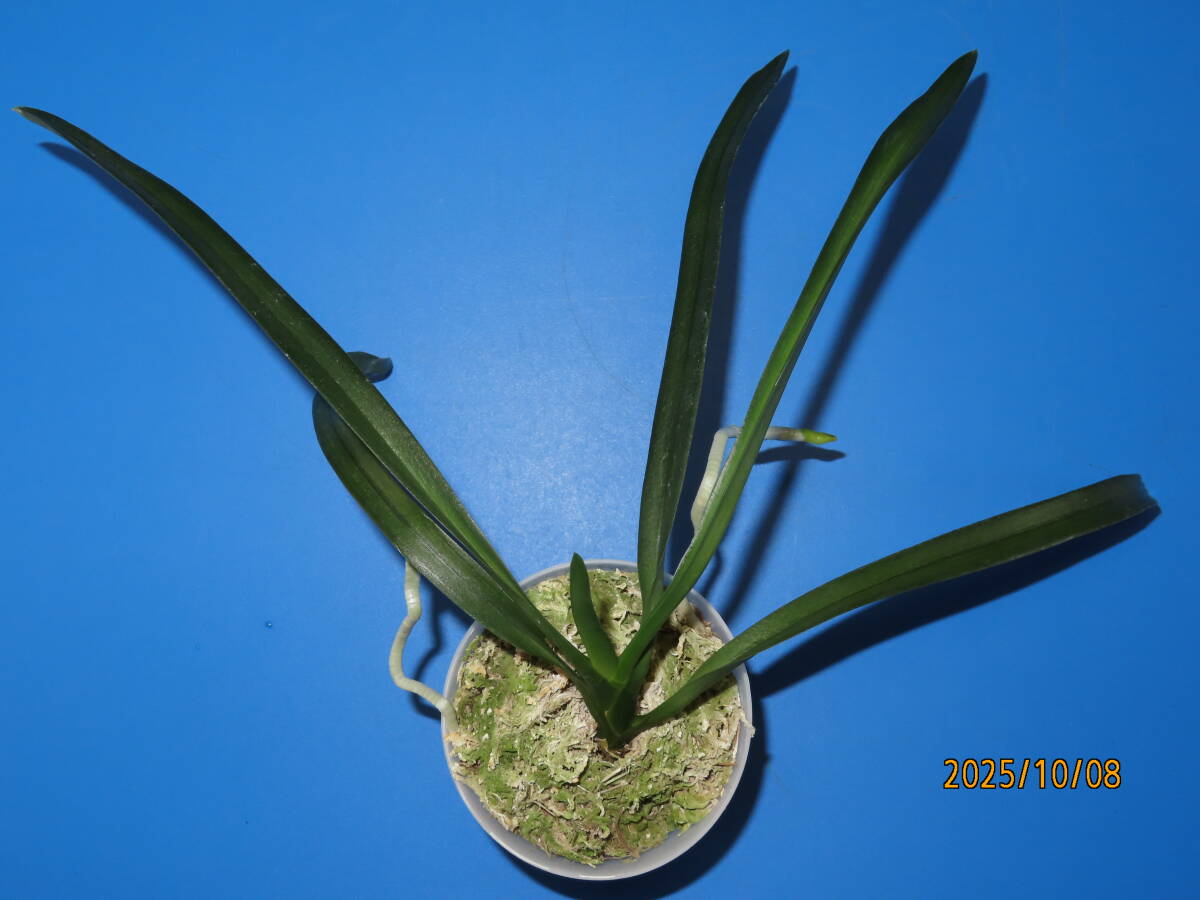 風蘭×リンコスティリスのルースネアリー系交配種は初秋咲きですが、本種は4~5月咲きです。