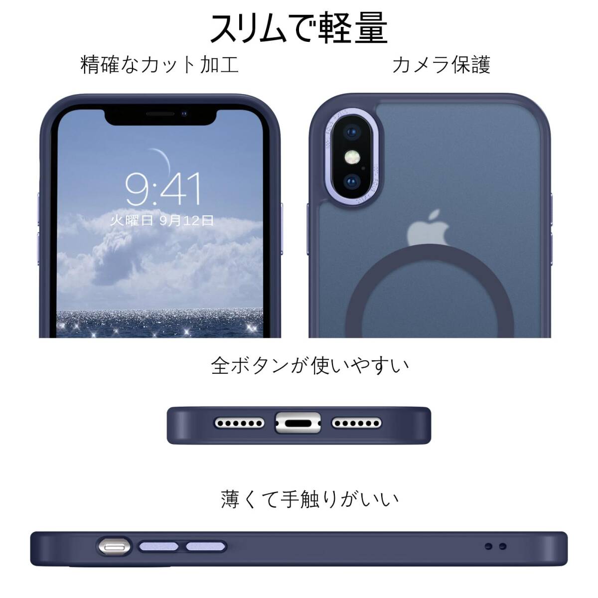 XS ケース/iPhone X ケース MagSafe対応 ワイヤレス充電 iPhone マット感 半透明 指紋防止 メタル レン