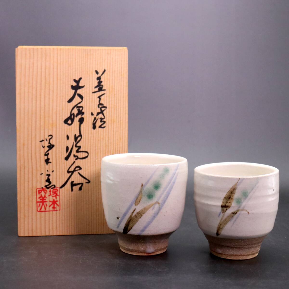 益子焼 塚本窯 夫婦湯呑 和茶器 共箱 です。