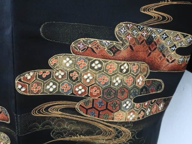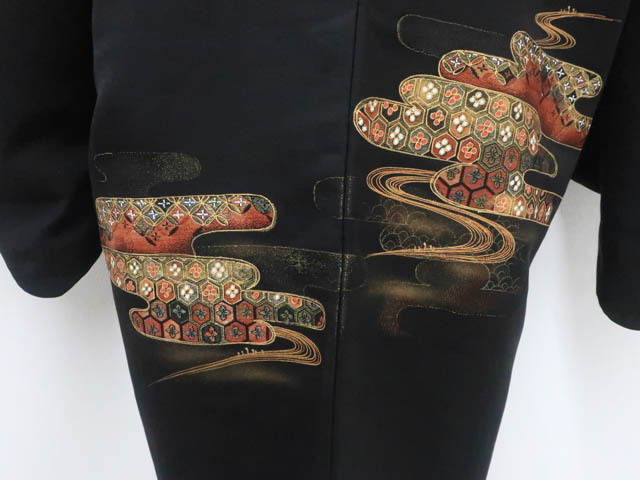 リサイクル商品ではございますが、大変良い状態のお品です。 地色は、黒色です。 1枚目の画像が近いお色かと思われます。 素材は正絹です。 |