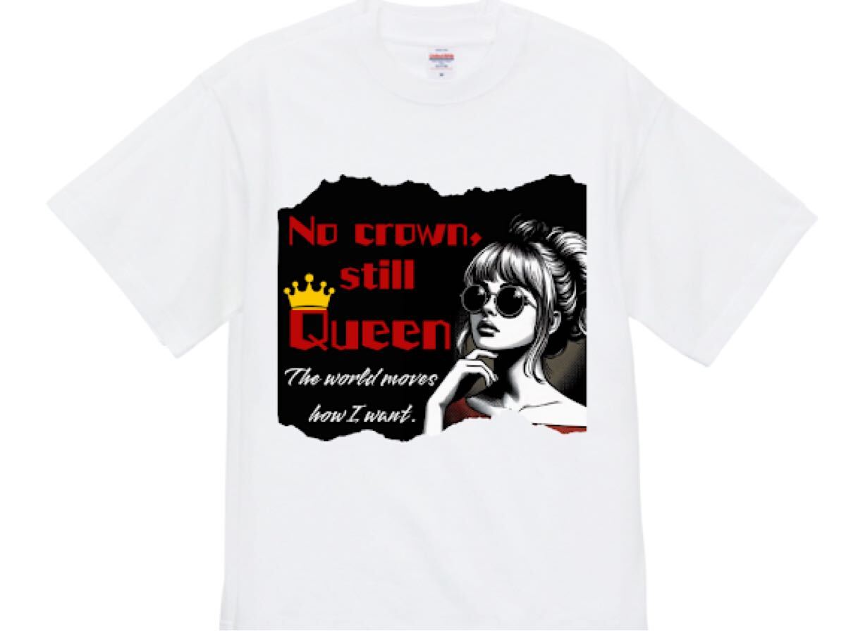 王冠は無くても私は女王。メッセージ性のあるかっこいいデザインです。これだけでオシャレのポイントになる一枚です。