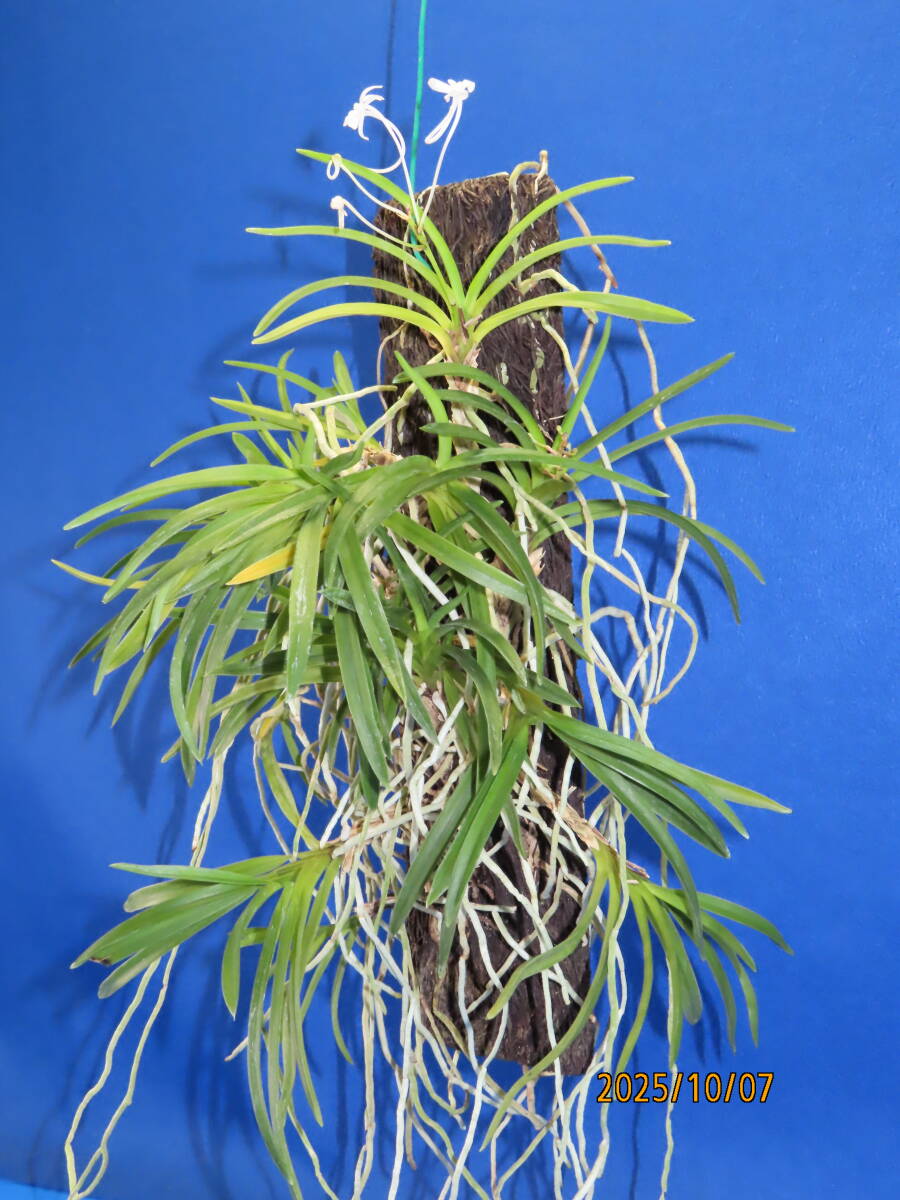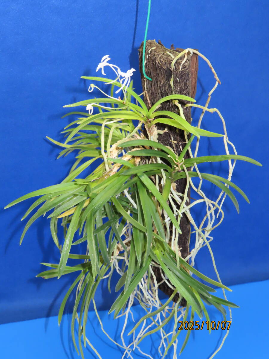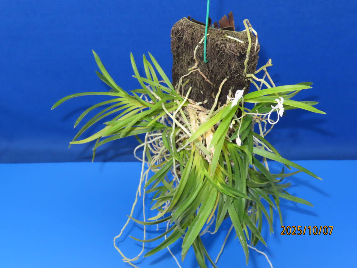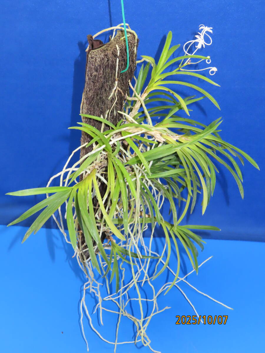 風蘭株は富貴蘭×富貴蘭の交配種(30年以上前の実生株)で、交配親は札落ちとなって不明です。