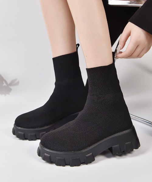 参考商品名:超軽量 厚底 凹凸ブロックソール ニット / ソックスブーツ 571