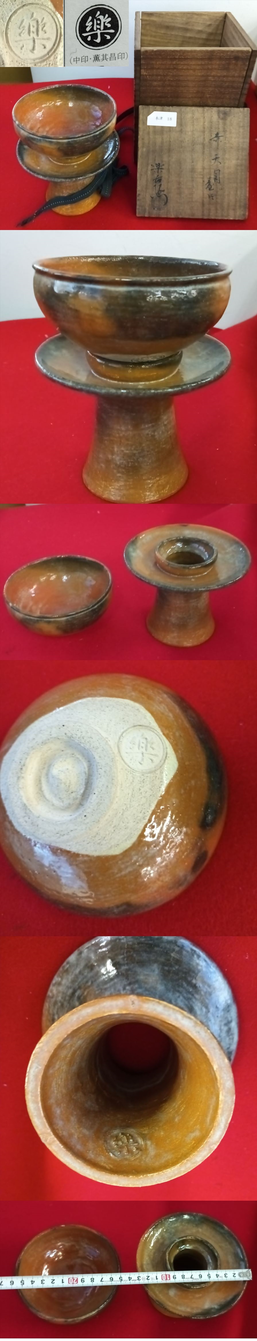 十一代楽吉左衛門(慶入) 赤楽 楽 茶碗 天目台 董其昌印 共箱 茶道具 保証品