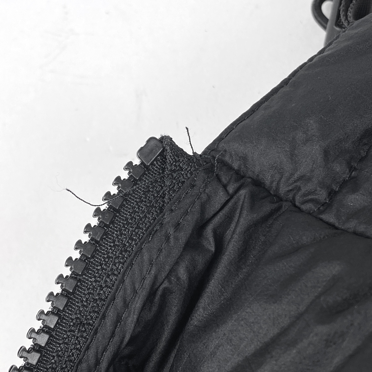 表地:ナイロン100%、袖口リブ部分:綿100%、詰物:ダウン(ダウン90%、フェザー10%)85%、ポリエステル15% 《全体》型崩れ、スレ、シワ 《リブ部分》僅かな毛羽立ち |