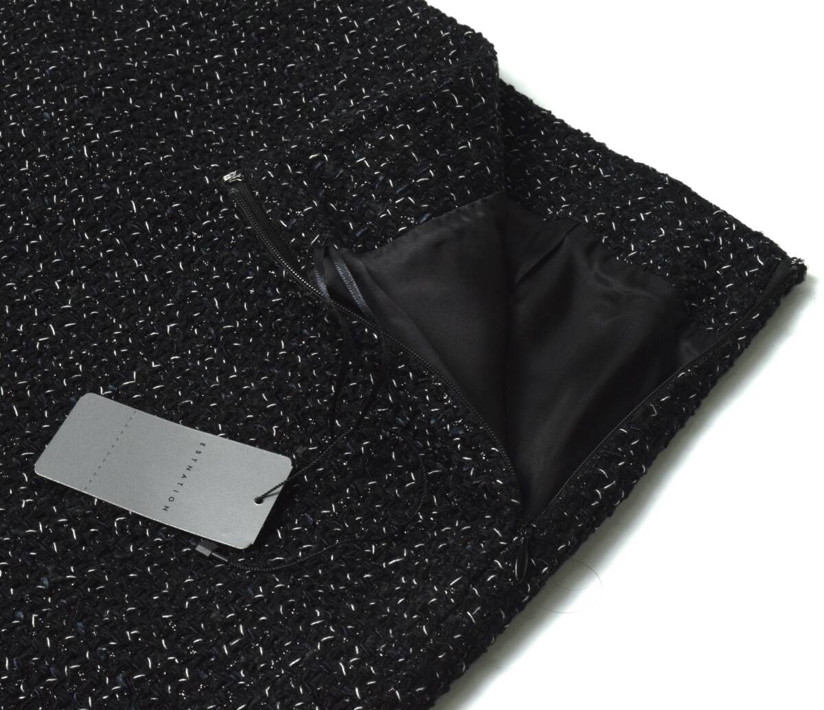 未使用 ESTNATION エストネーション ファンシーツイード バックフレア ミニスカート 38 ブラック