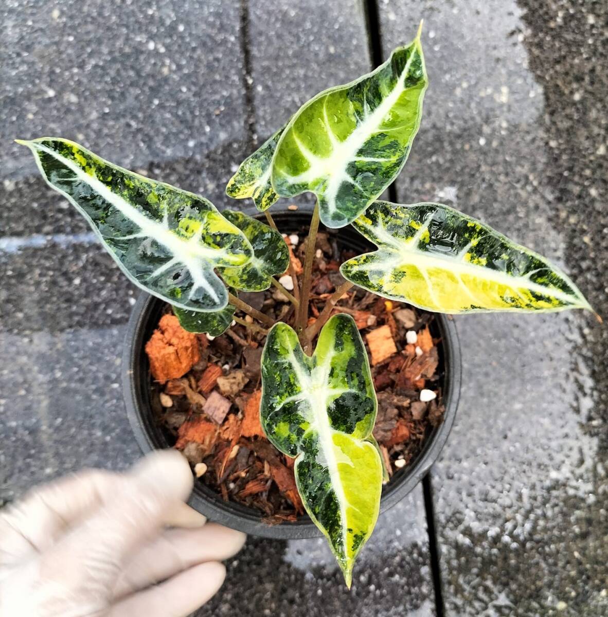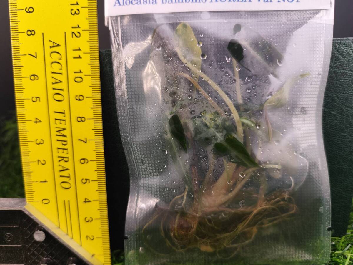 ▼▼▼▼▼▼▼▼▼▼▼▼▼▼▼▼▼▼▼▼▼▼▼▼▼▼▼▼▼▼▼▼▼▼▼ ■当サイトについて■ 必ず最後まで目を通しご理解上落札下さい 当サイトは、土曜日、日曜日、祝日がお休みです。 また、臨時休業については、自己紹介欄にてお知らせしております。 臨時休業中はご連絡ができない場合がございますので、 あらかじめご理解のうえご落札ください。 最後まで誠意を持ち、真心を込めてオークションを進めてまいります。 下記に組織培養栽培の豆知識も記載しています どうぞ最後までよろしくお願いいたします。 以下もご一読いただけると幸いです。 「cute○○ 評価1,921」のオークションを ご覧いただきありがとうございます。 このたび植物の保管環境を見直し、 より良い状態で植物をお届けできるよう準備を整えました。 心機一転、新たに販売を再開いたします。 今後は、 組織培養植物やさまざまなレア植物の苗も取り扱ってまいりますので、 どうぞよろしくお願いいたします。 ▲▲▲▲▲▲▲▲▲▲▲▲▲▲▲▲▲▲▲▲▲▲▲▲▲▲▲▲▲▲▲▲▲▲ ■安心の正規輸入植物■ 取り扱っている培養株は、正規に輸入されたもので、 海外または日本の検疫基準を満たしているため、安心してご購入いただけます。 植物の新鮮さと品質にこだわっておりますので、どうぞお楽しみください。 ■植物の取り扱いご到着にについて■ 組織培養の植物株は、特殊ビニールに入れてお届けします。 しかし、輸送中の温度や環境の変化、または袋から確認できない損傷などにより、 植物の状態が悪くなる場合があります。 その際は、誠意を持ってご相談に応じますので、ぜひお知らせください。 ただし、発送中に葉が枯れたり、植物の位置が変わったりすることもあり得ます その点をご理解の上ご購入ください。 ▲▲▲▲▲▲▲▲▲▲▲▲▲▲▲▲▲▲▲▲▲▲▲▲▲▲▲▲▲▲▲▲▲▲ ■組織培養株■ 商品植物は、すべて組織培養(tissue culture)によって栽培された株です。 これらは、海外の著名な農業大学や専門研究所から取り寄せており、高品質が保証されています。 組織培養を通じて生産された【Alocasia アロカシア斑入りの植物は】については、 斑入り植物は常に安定した斑入りの葉が確認されており、研究機関からの報告があります。 ※最初に掲載されているのは、研究所から提供された 兄弟株の画像です。 兄弟株であっても、完全に同一の特徴を持つことはありません。植物は自然のものですので、 形状や色合いに多少のばらつきがありますが、その確率は非常に高いものです。 ▲▲▲▲▲▲▲▲▲▲▲▲▲▲▲▲▲▲▲▲▲▲▲▲▲▲▲▲▲▲▲▲▲▲ ■出品組織培養株■ 植物の状態をできるだけ正確にお伝えするため、 さまざまな角度から撮影しています。 撮影後も生き物であるため、古い葉が枯れたり、新しい葉が生えたりすることがあります。 これにより、実際の植物には多少の変化が生じる可能性がありますので、 その点もご理解の上でご落札いただけますようお願い申し上げます。 画像で植物をよくご覧くださいご確認ください ▲▲▲▲▲▲▲▲▲▲▲▲▲▲▲▲▲▲▲▲▲▲▲▲▲▲▲▲▲▲▲▲▲▲ 組織培養植物詳細 Alocasia bambino AUREA Var NO1大株 1株入り 幹高さ12cm~15cm前後【素人寸】 枯れ葉があることもございますが成長点の茎は元気で根もしっかりしています 到着後枯れた葉切って順化させれば新芽も直ぐに出てくる安心株です 上記を含めご落札ください ▲▲▲▲▲▲▲▲▲▲▲▲▲▲▲▲▲▲▲▲▲▲▲▲▲▲▲▲▲▲▲▲▲▲ ※組織培養栽培株は空港便加温されない貨物室内に保管 ・飛行機の後部や下部にある貨物室は、 加温されないことがあります。 この場合、外気温に近い極端に低い温度(氷点下になることも)になる可能性があります。 一部の飛行機では、特定のエリアが加圧されているだけで温度調整は行われていません。 こんな状況で全ての植物たちは耐えて日本に着てますので朝零下が2時間くらい全く問題無いですが 発送にはカイロを入れ発送致します ▲▲▲▲▲▲▲▲▲▲▲▲▲▲▲▲▲▲▲▲▲▲▲▲▲▲▲▲▲▲▲▲▲▲ ★私的ですが自己責任で組織培養栽培植物の育成ポイント ※斑入り植物の成長について ・組織培養栽培で最初から斑入りの場合は成長が遅い傾向があります。 最初がグリーンの状態であれば成長が早く、 後から斑が自然に必ず素晴らしいく現れるため心配いりません。 ※組織培養栽培植物で茎や葉が多い植物の順化手順 ・茎や葉が多い状態でピートモスや水苔に移すと、 根がすべての葉に栄養を行き渡らせることができず枯れる可能性があります。 先に適度に剪定することで、根の負担を減らし、成長を早めることができます。 根本から古い順番に茎や斑入りでも葉を落とし成長点から3枚くらい残し下は全て切ります ※順化のコツ ・剪定後、植物を順化ケースに鉢を移して環境に馴染ませます。 適切な剪定により栄養の