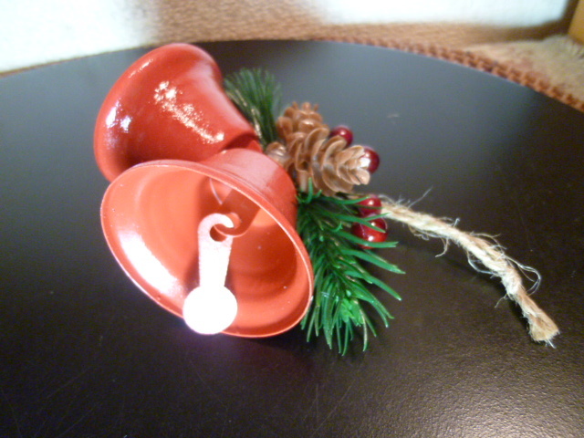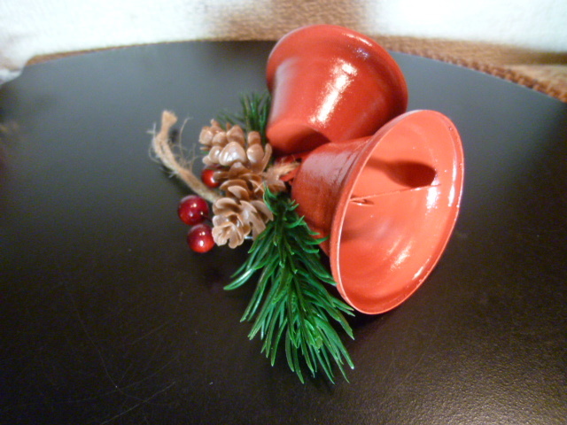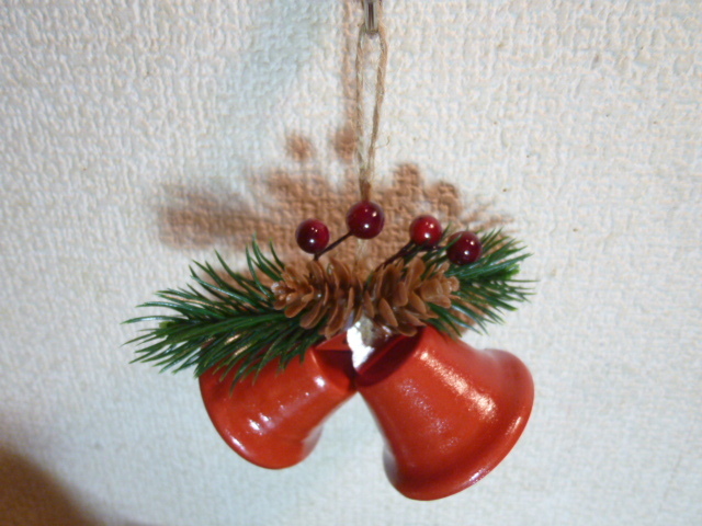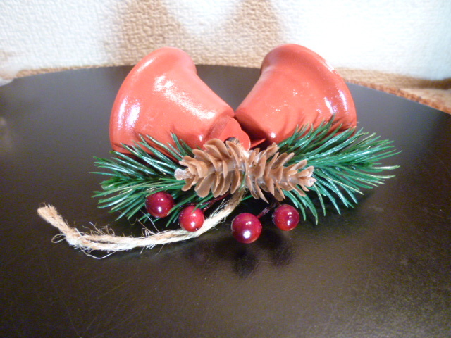 赤いベルに松ぼっくりと南天がセットになったものが3組です。