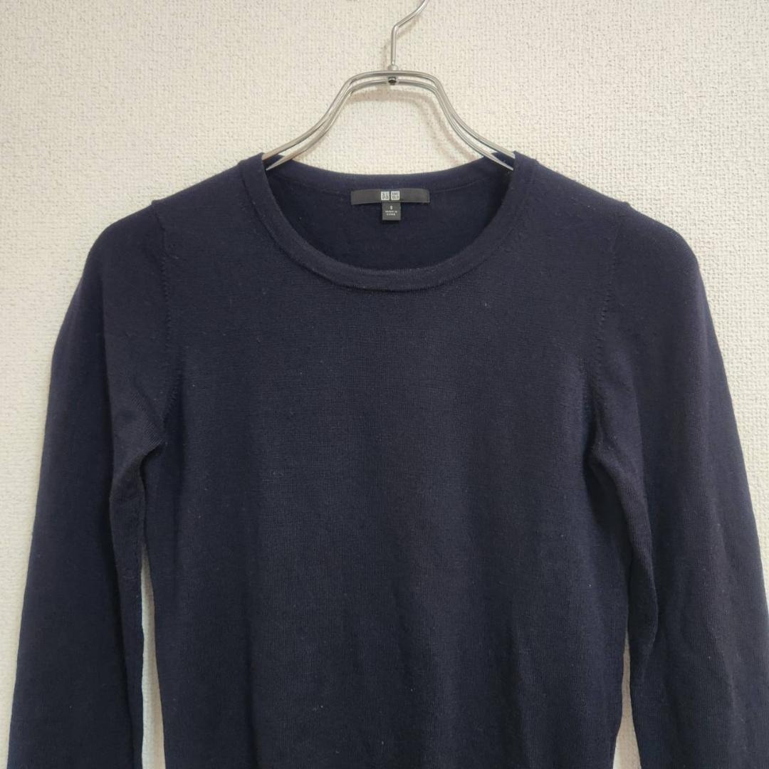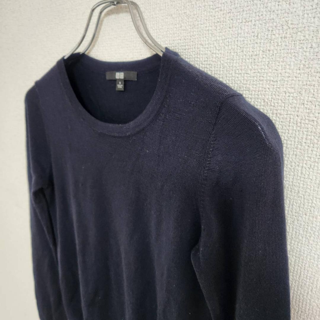シンプルなデザインで着回しやすい、ユニクロのウール100%ニットです。