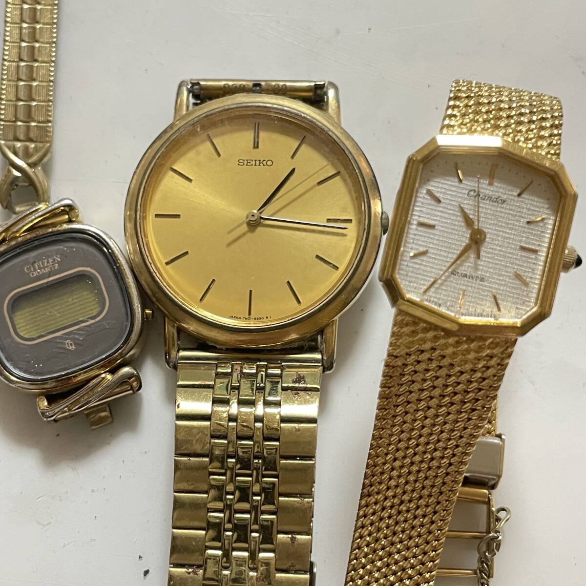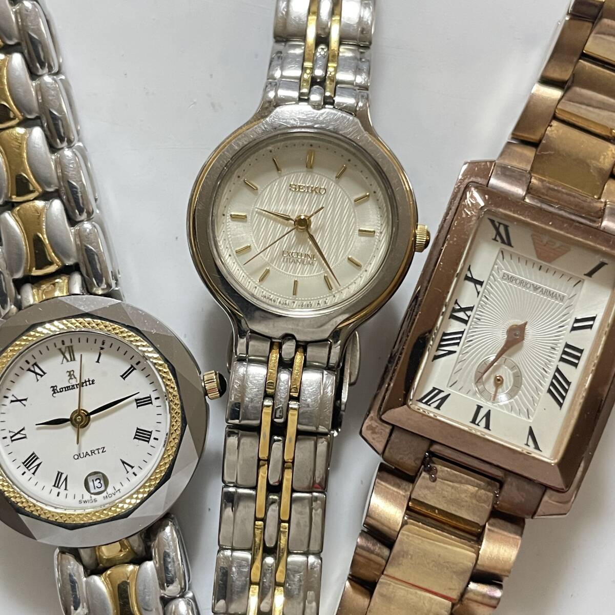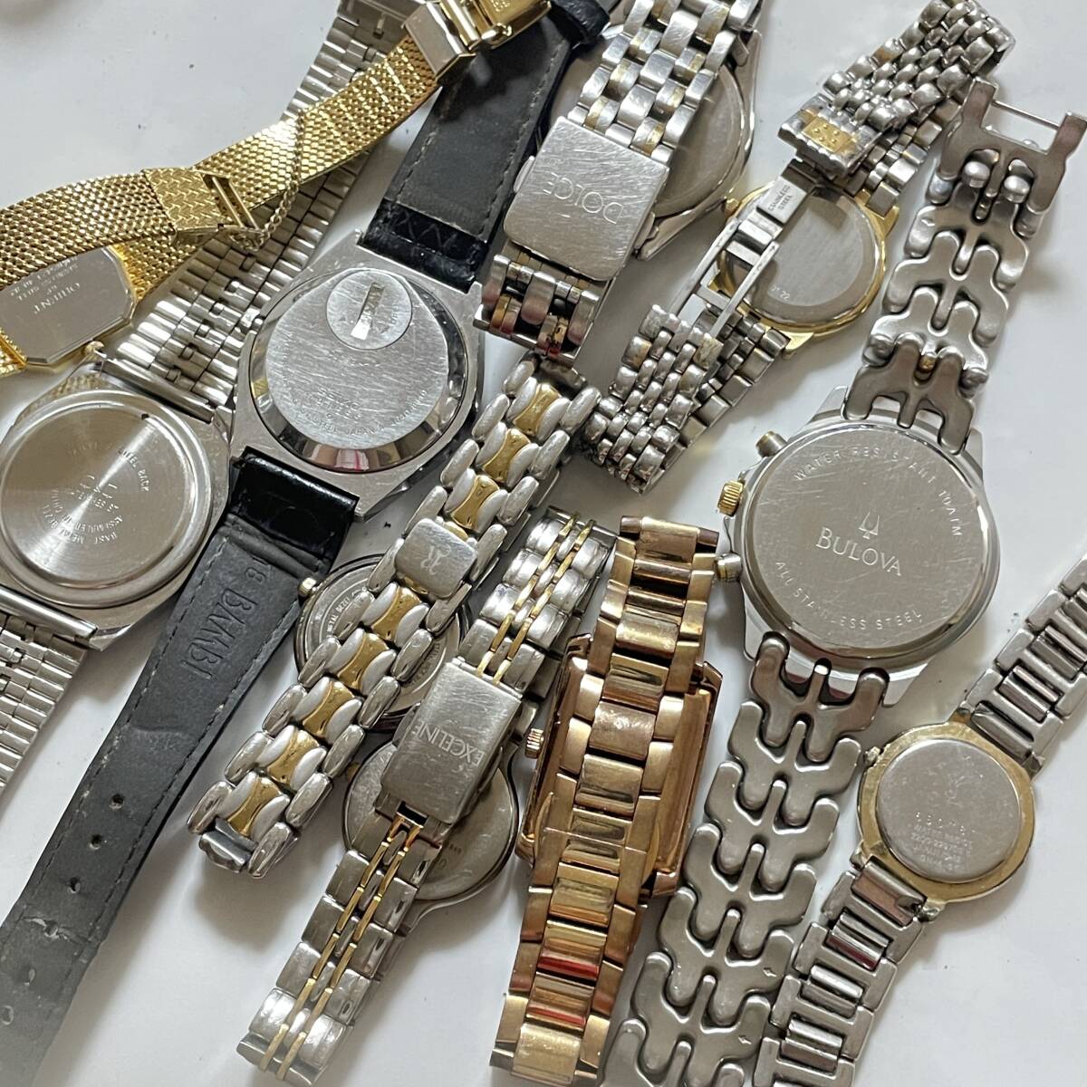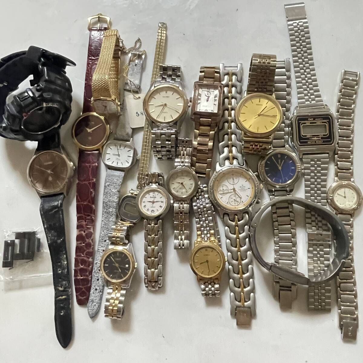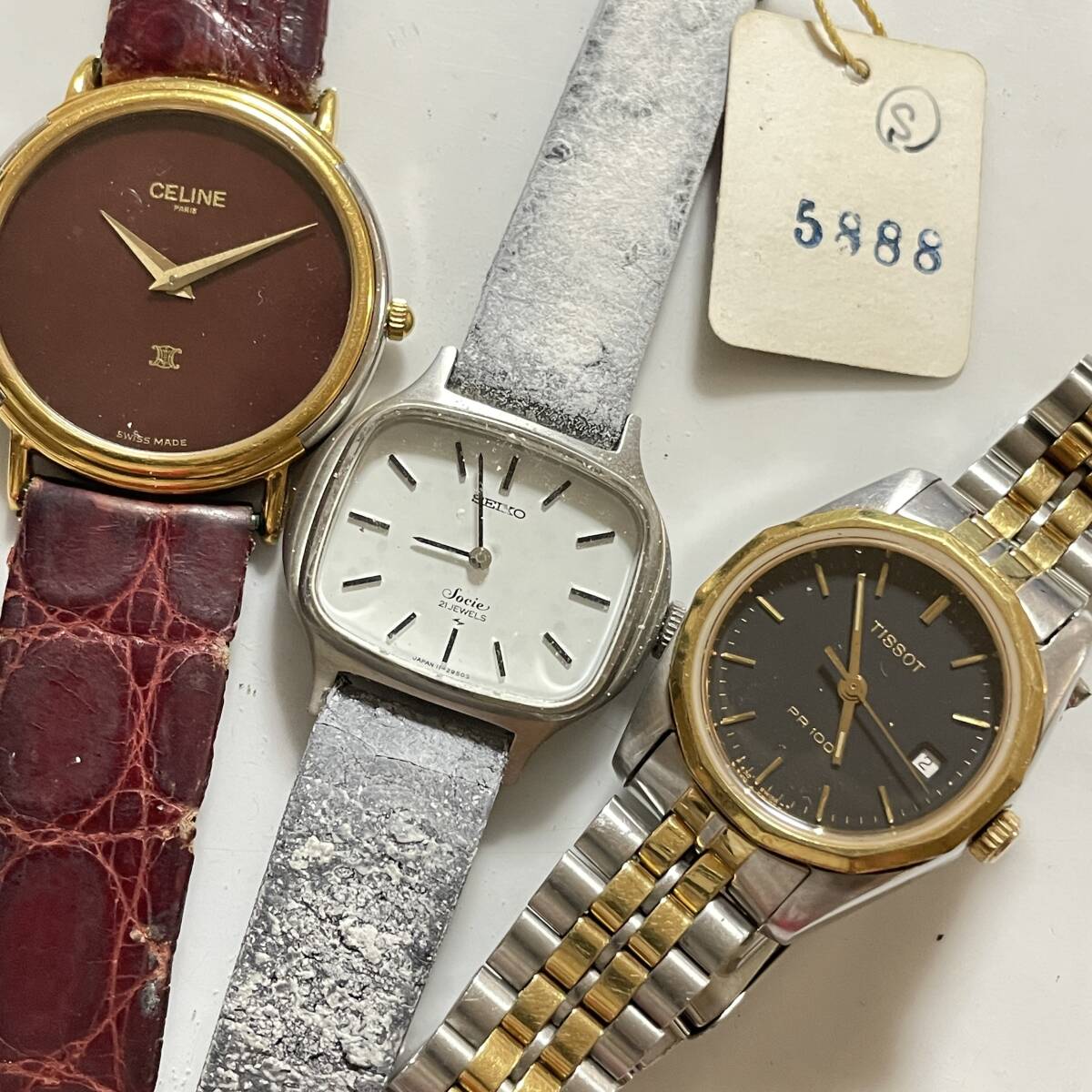 【商品名】腕時計 まとめて Q&Q/ETERNA/イブサンローラン/アルマーニ/セイコー/CELINE/ティソ/カシオなど 動作未確認でジャンク扱 【付属品】画像がすべてです。 【状態】 動作未確認、ジャンク扱いです。 汚れ、擦れ傷、使用感など何らかのダメージがあります。 わかる範囲での状態を明記しております。それ以外の不具合がある場合がありますので、現状渡し、ジャンク扱いとなります。 ※商品説明に記載されてる内容以外の確認は一切行っておりません。記載以外の内容に関しての対応は受け付けておりませんので、予めご理解いただいた方のみご入札をお願いいたします。 | |||