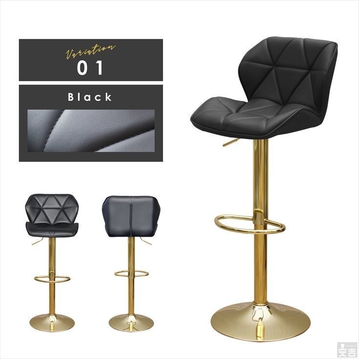 昇降式カウンターチェアー WY-614 ゴールド脚タイプ ブラック |