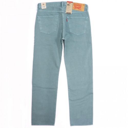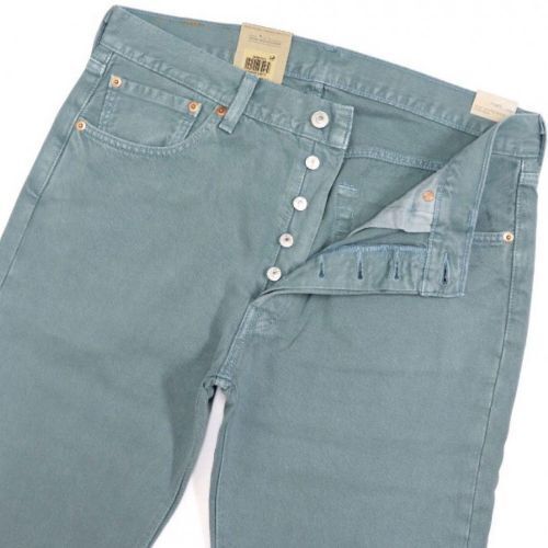 501の代名詞であるボタンフライと、綿100%でジーンズならではの耐久性があり、ライトグリーンをユーズド加工によって独特な色合いと風合いがあります。