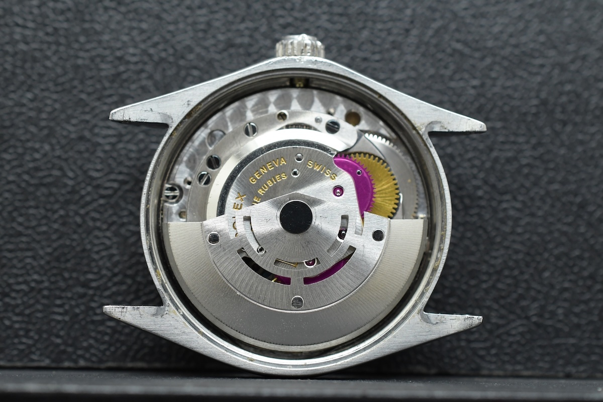 動作 | 針の動作は確認できますが、計測器での確認などはしていないため正確性は不明となります。 リューズ操作での針送りは可能ですが、やや重い感触となっています。 リューズロック可能です。 その他細かい動作確認は行なっておりません。 |