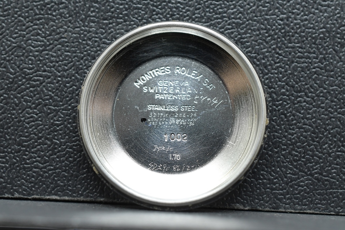 外観 | ※外観についての詳細は、商品画像をご参考にしてください。 全体的に使用感があり、経年相当の傷みが見られます。 ケース・ベルトに使用によるスレやキズ、わずかにサビがあります。 ベルトは若干たわみがあります。 針に若干サビが見られます。 ベルトは7835/S/W8が付いており、コマ数はバックル側7コマ、中板側5コマとなります。 |