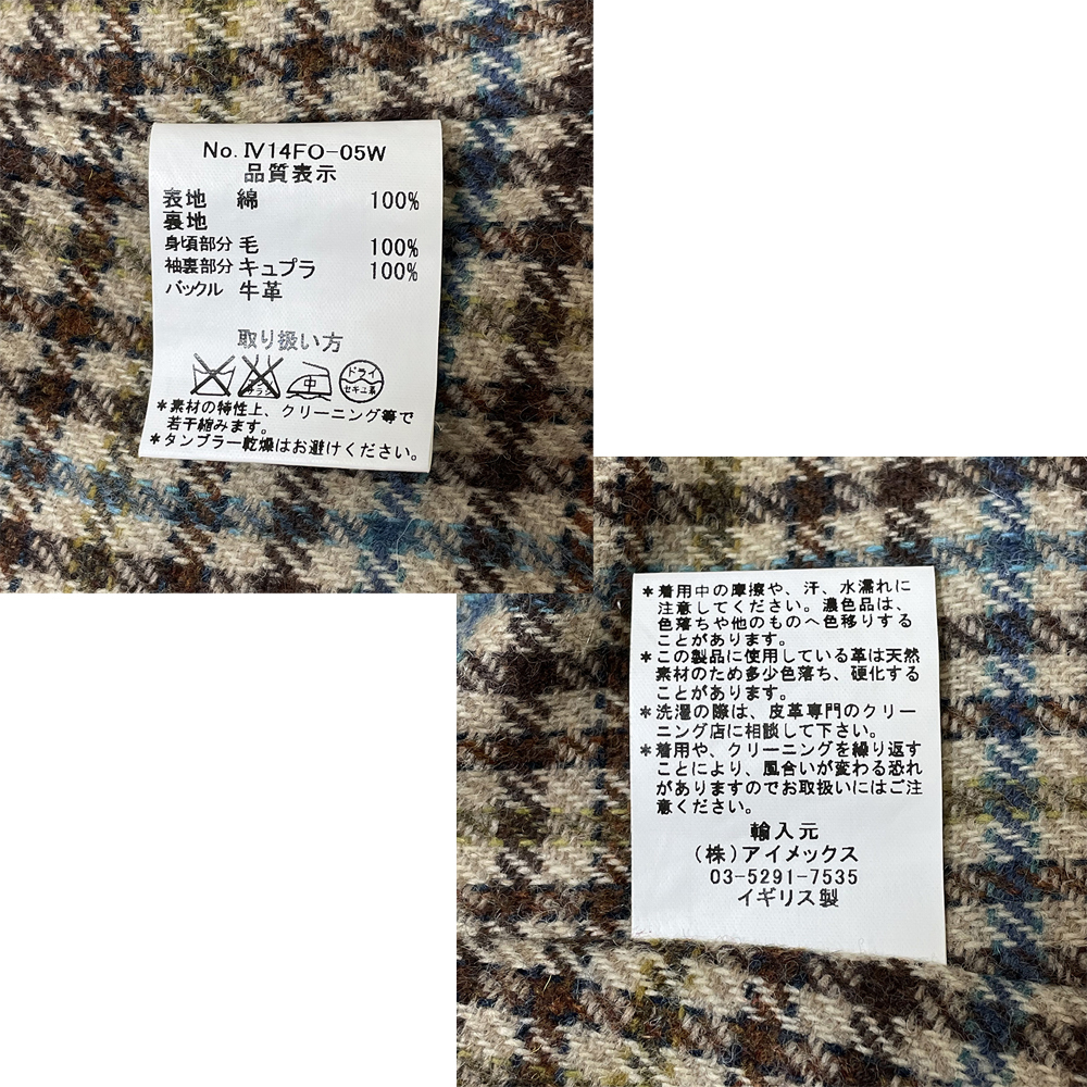 ◆定価96,120円 インバーティア 英国製【INVERTERE】裏地ハウスチェック柄 コットンギャバジン 本格トレンチコート 32◆