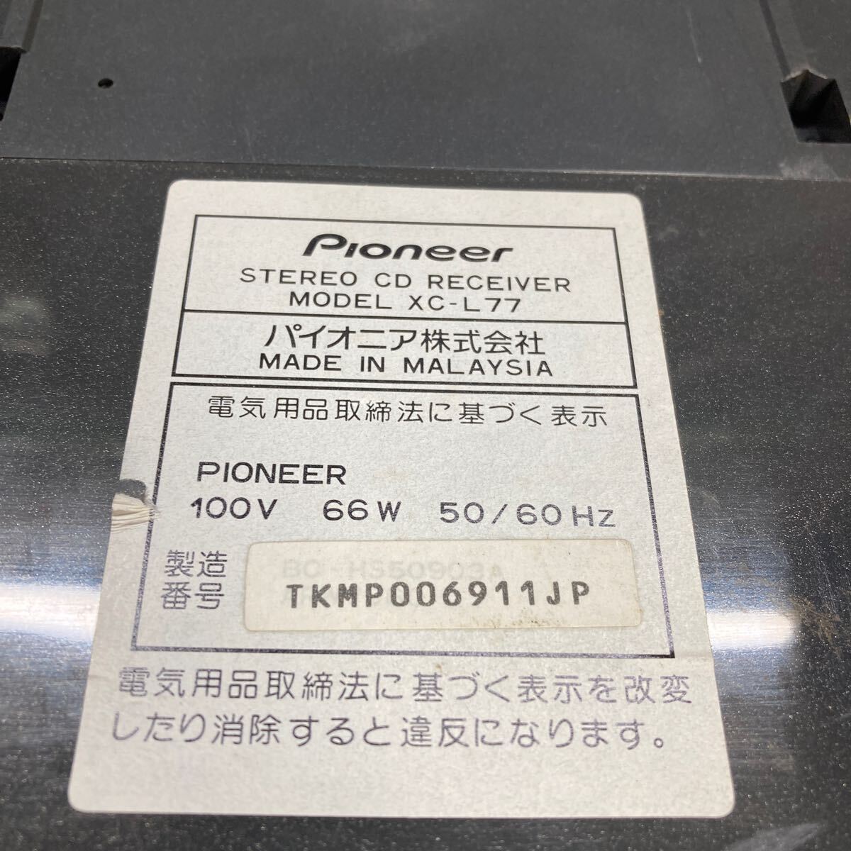 MYM10-197 激安 PIONEER STEREO CD RECEIVER XC-L77 通電、電源オン、オフOK 中古現状品 ※3回再出品で処分