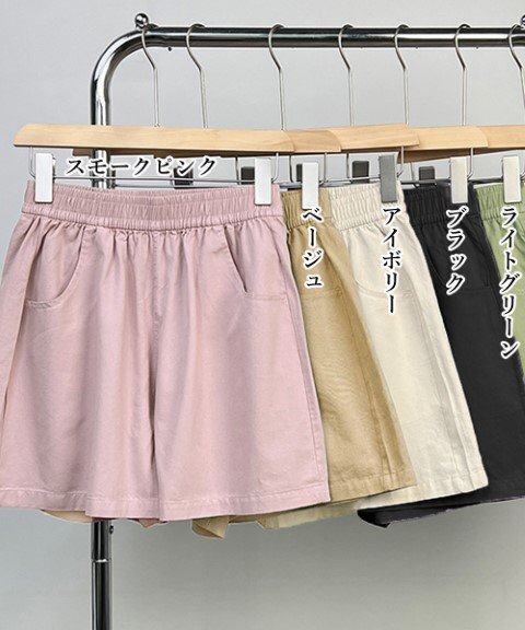 着丈:約40cm 股下:約8cm ウエスト(ゴム仕様):約62-100cm ヒップ:約114cm もも周り:約70cm