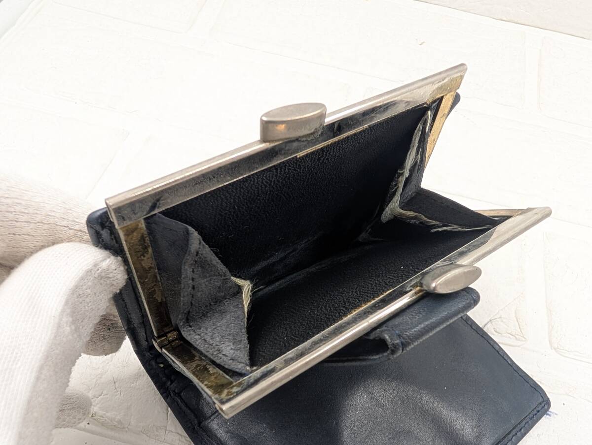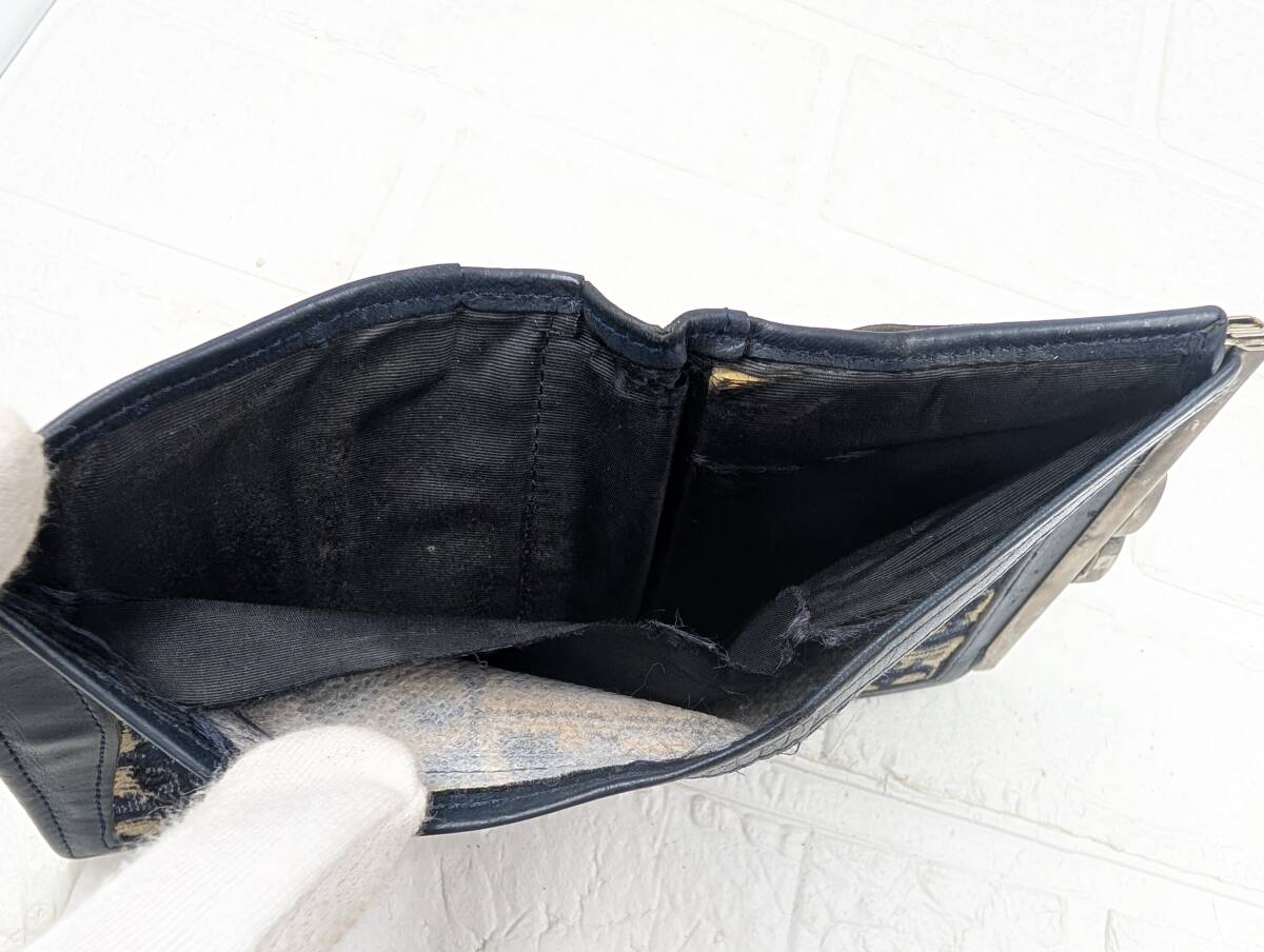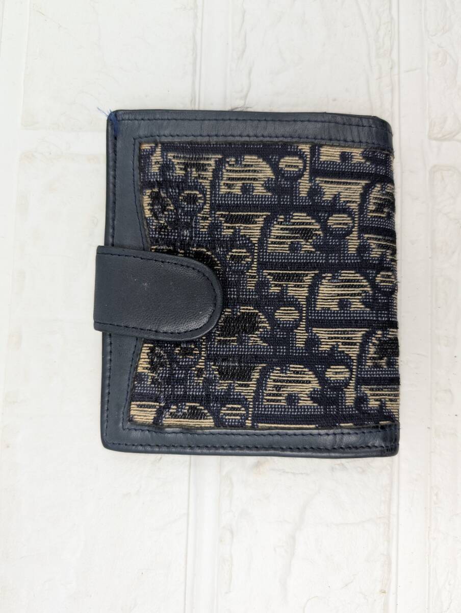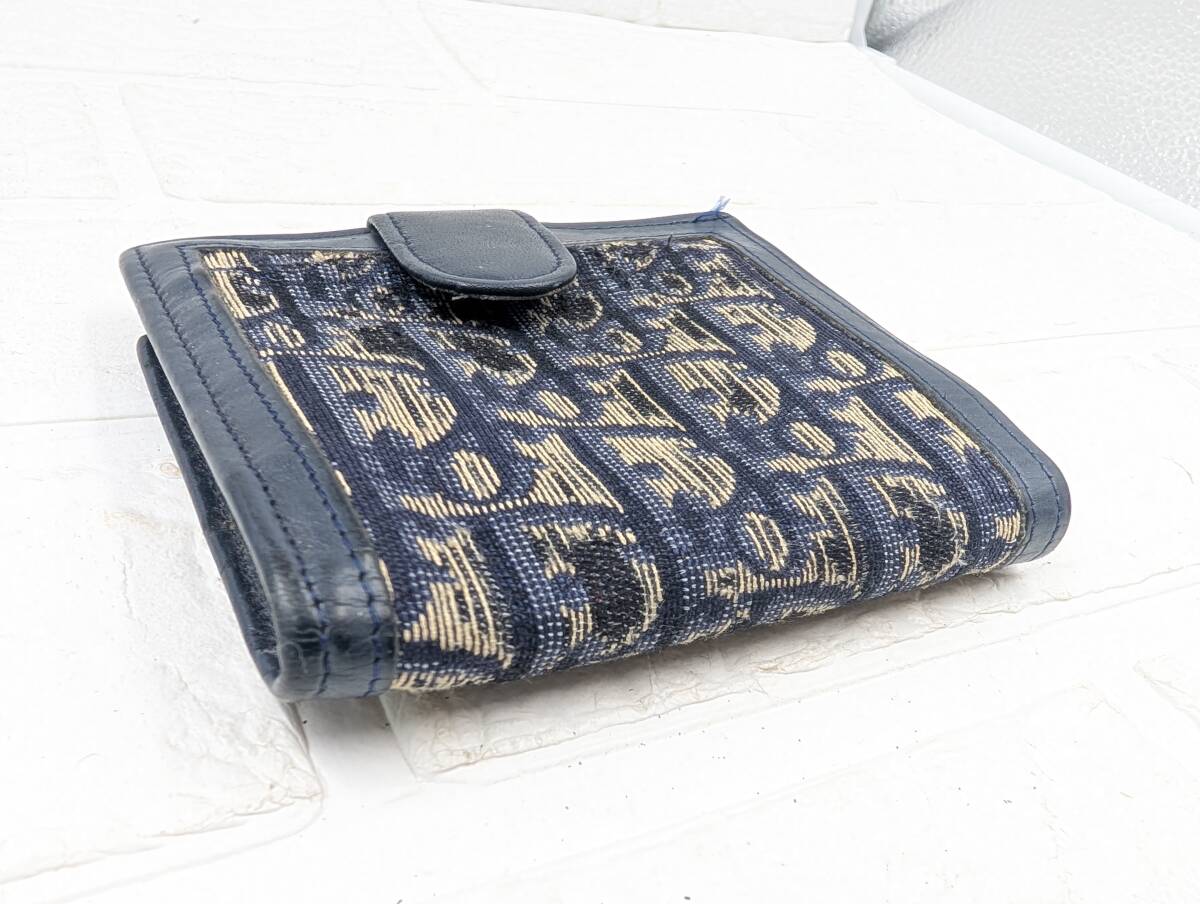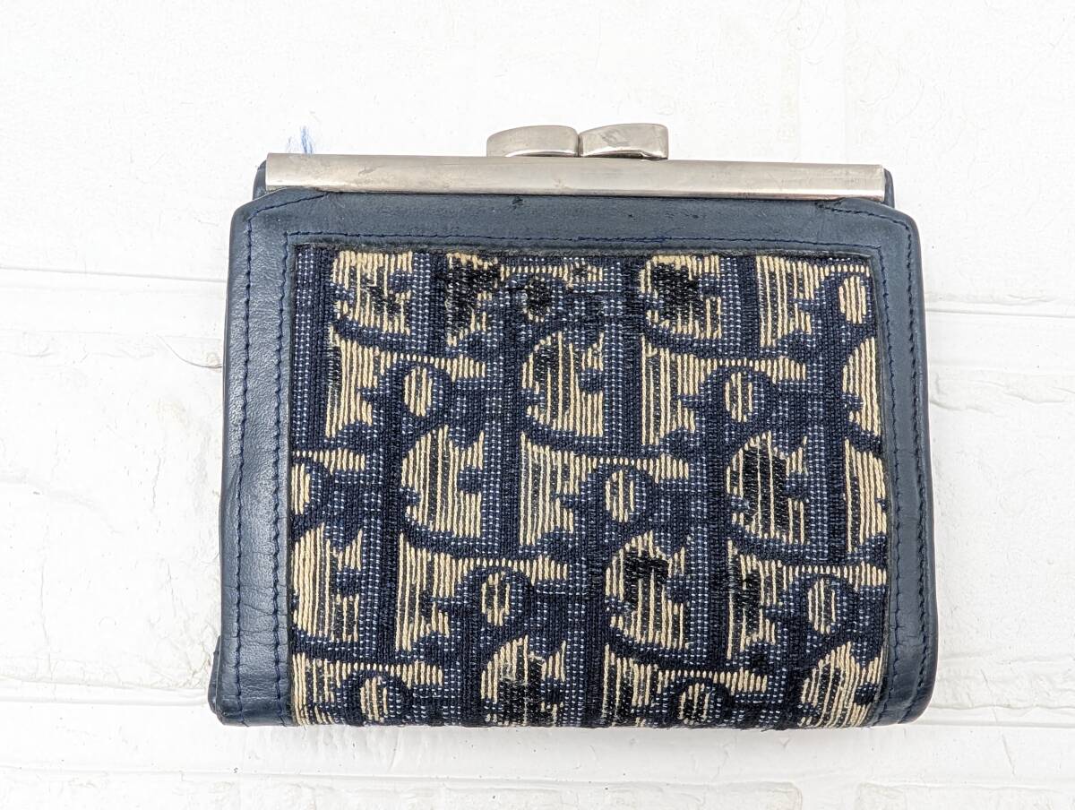 1000円~☆CHRISTIAN DIOR クリスチャン ディオール ヴィンテージ 二つ折り財布 がま口 ネイビー 11.2㎝×10㎝