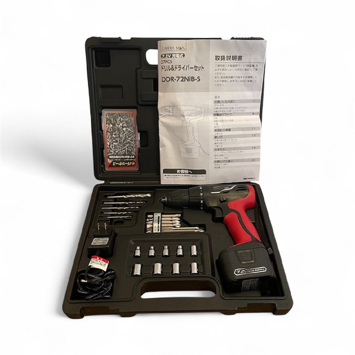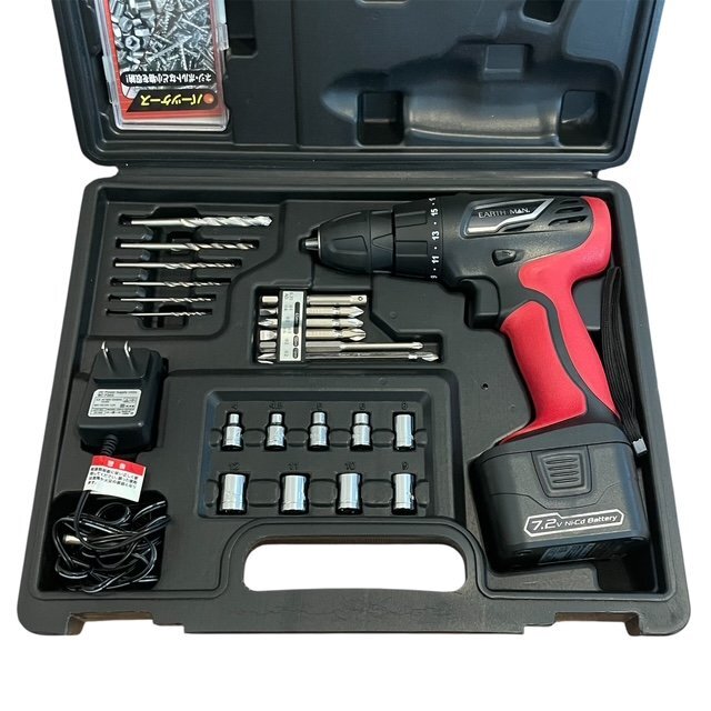 EARTHMAN 7.2V 充電式ドリル&ドライバーセット DDR-72NIB-S DIY 軽作業 持ち運び コンパクト 電動工具 専用ケース付 DIY 日曜大工 HMY |