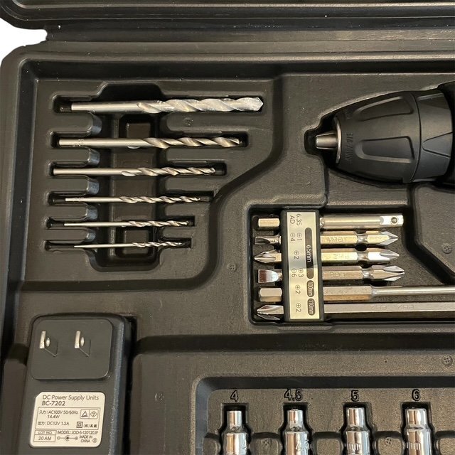 商品説明 7.2Vの充電式ドリルドライバーと各種ビット、ソケットなどがセットになっています。 持ち運びも便利なので、DIY8軽作業に適しています。 詳細 ●サイズ:【BOX】縦29cm、横34cm、厚さ9cm ●動 作:動作確認済み ●ランク:Bランク ●コンディション:使用感が少なく美品です。 ネジケースにキズがあります。 |