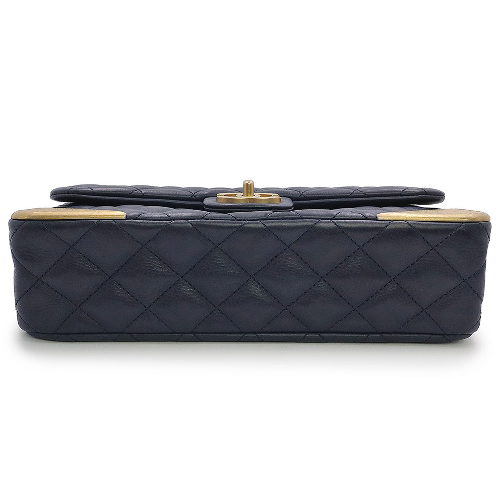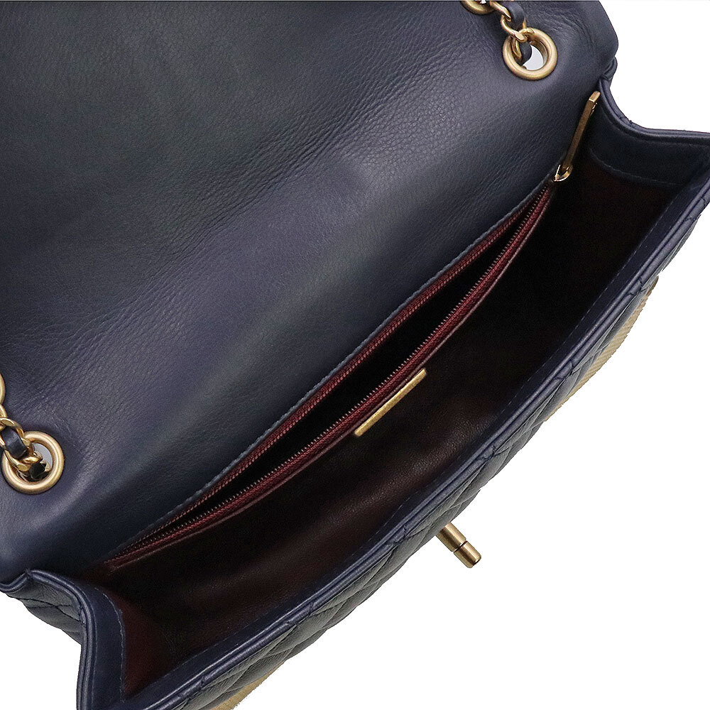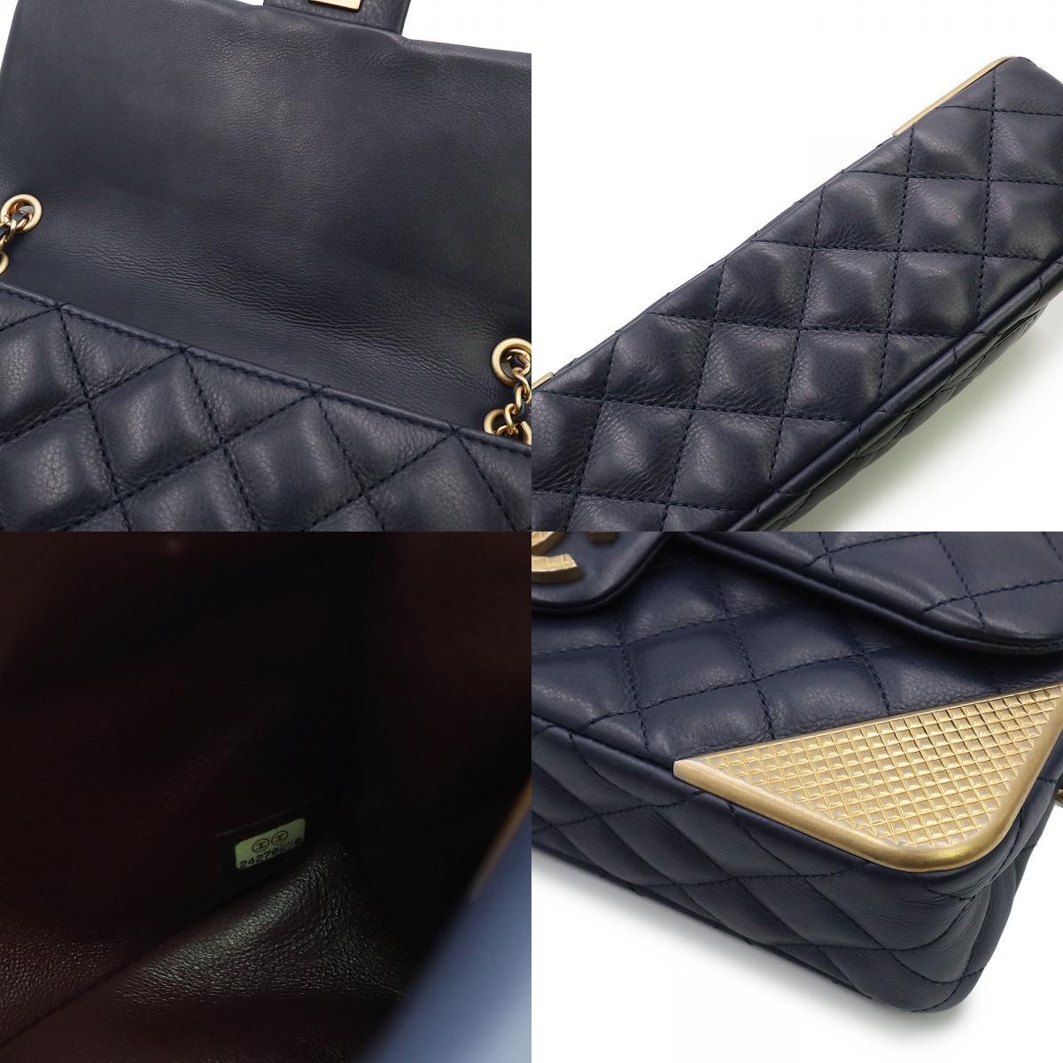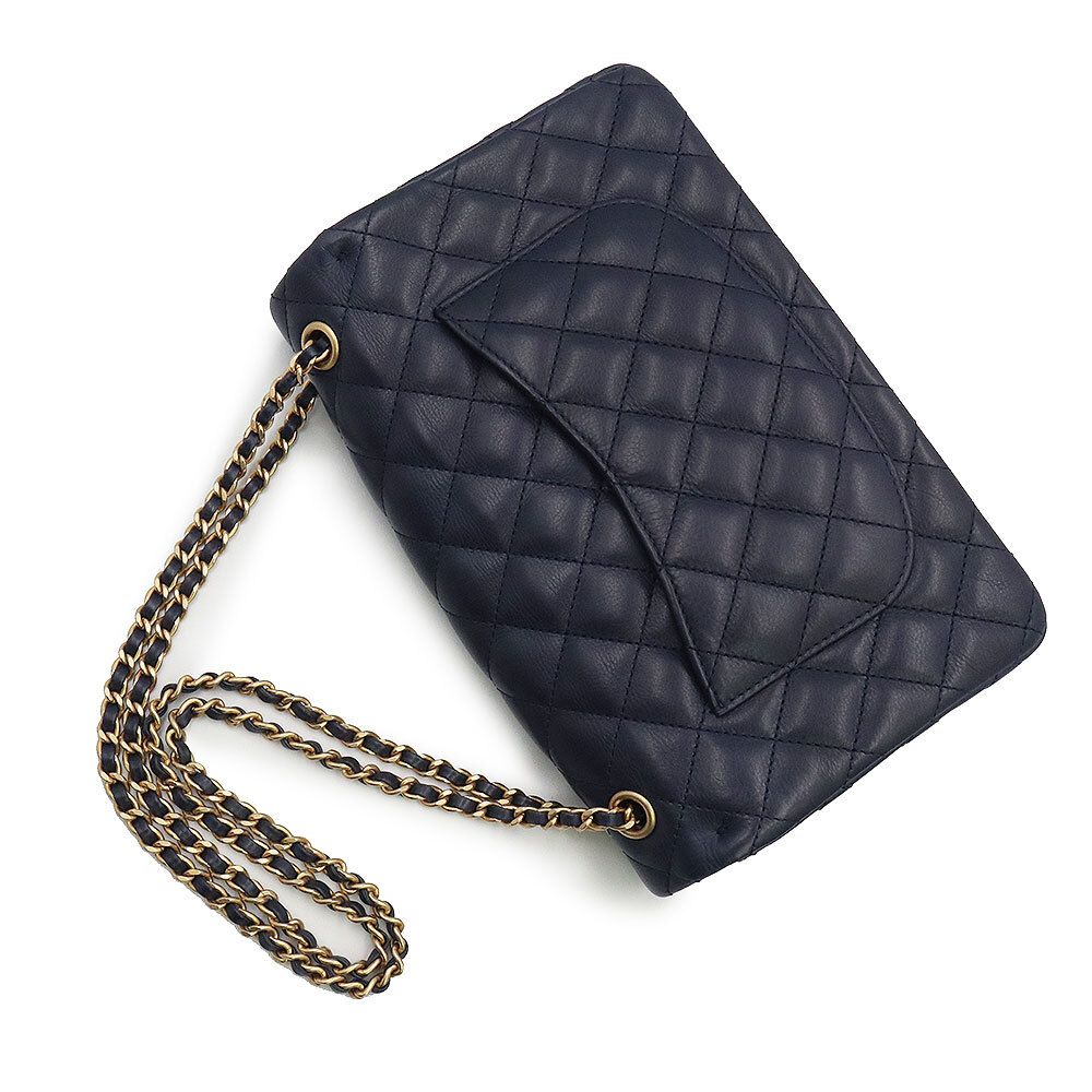 (美品)シャネル CHANEL マトラッセ チェーン ショルダーバッグ 斜め掛け カーフスキン レザー ネイビー アンティークゴールド金具 A94495