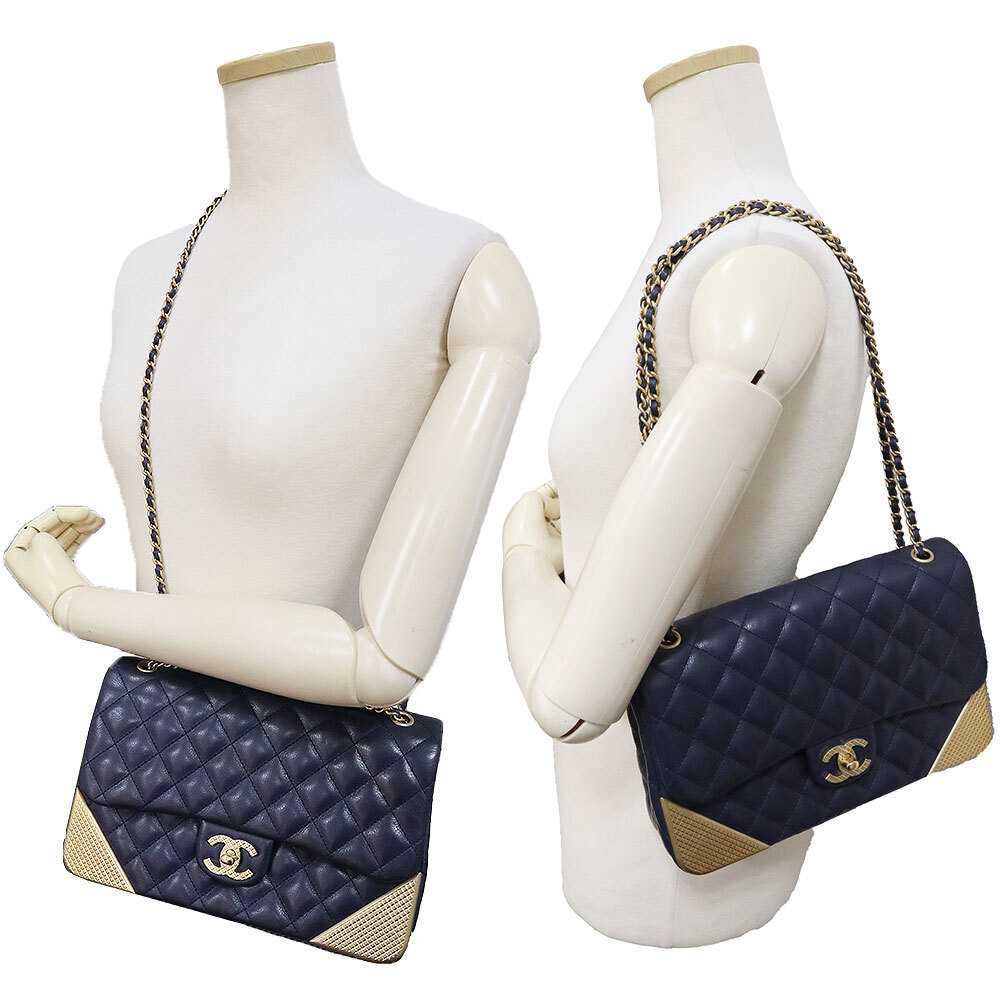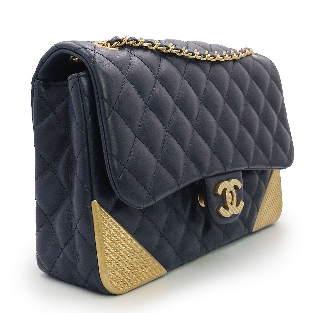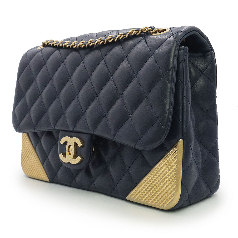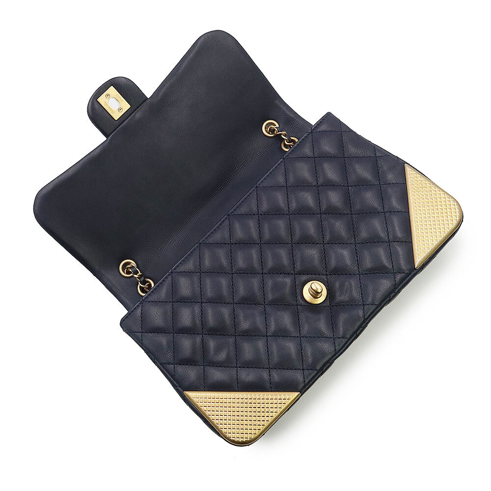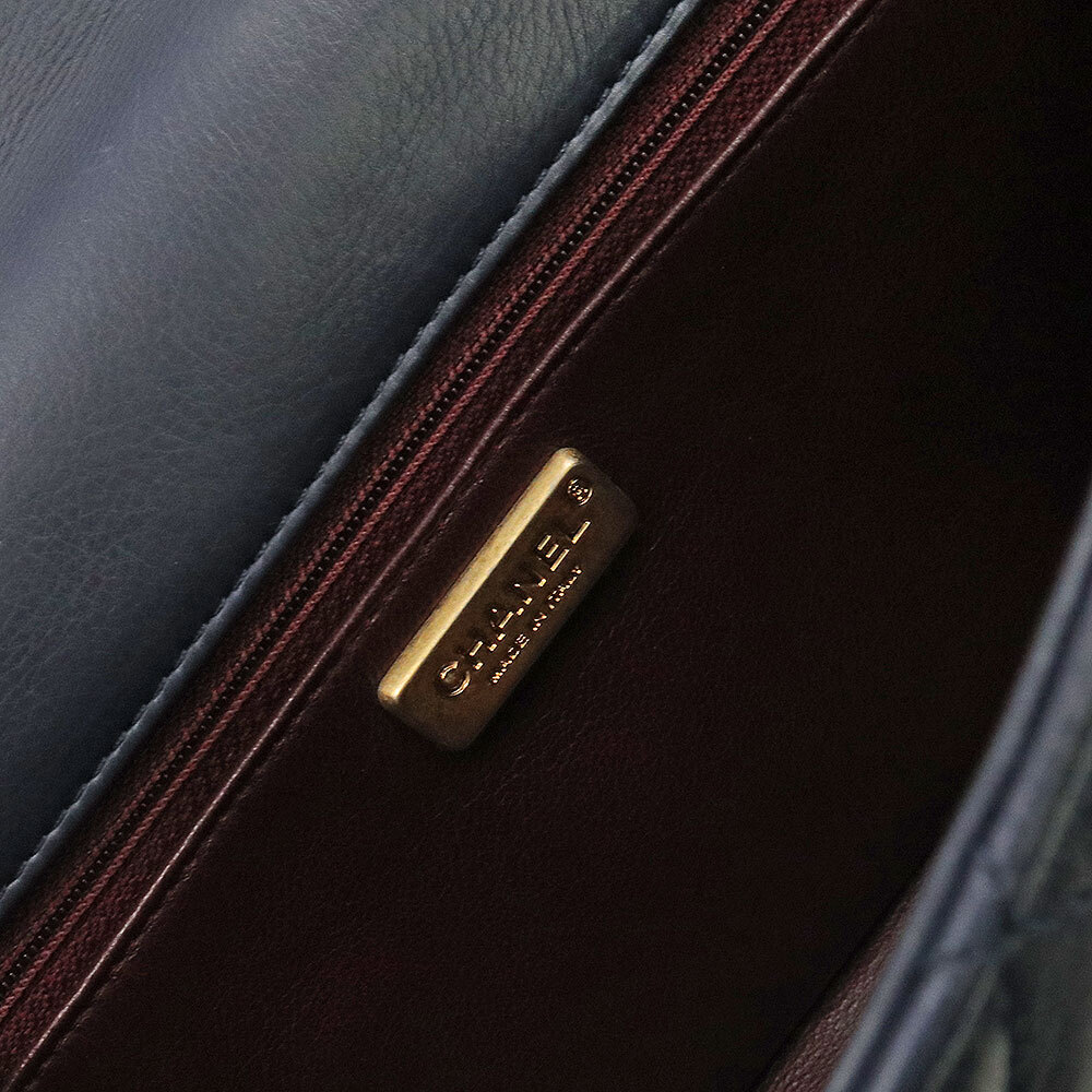 (美品)シャネル CHANEL マトラッセ チェーン ショルダーバッグ 斜め掛け カーフスキン レザー ネイビー アンティークゴールド金具 A94495