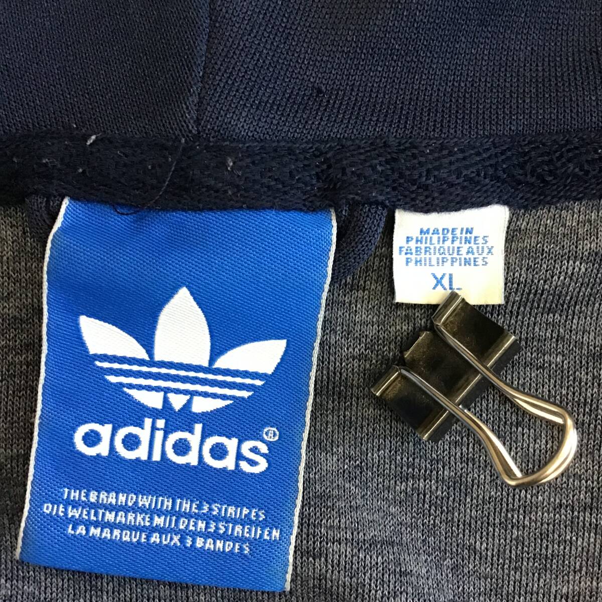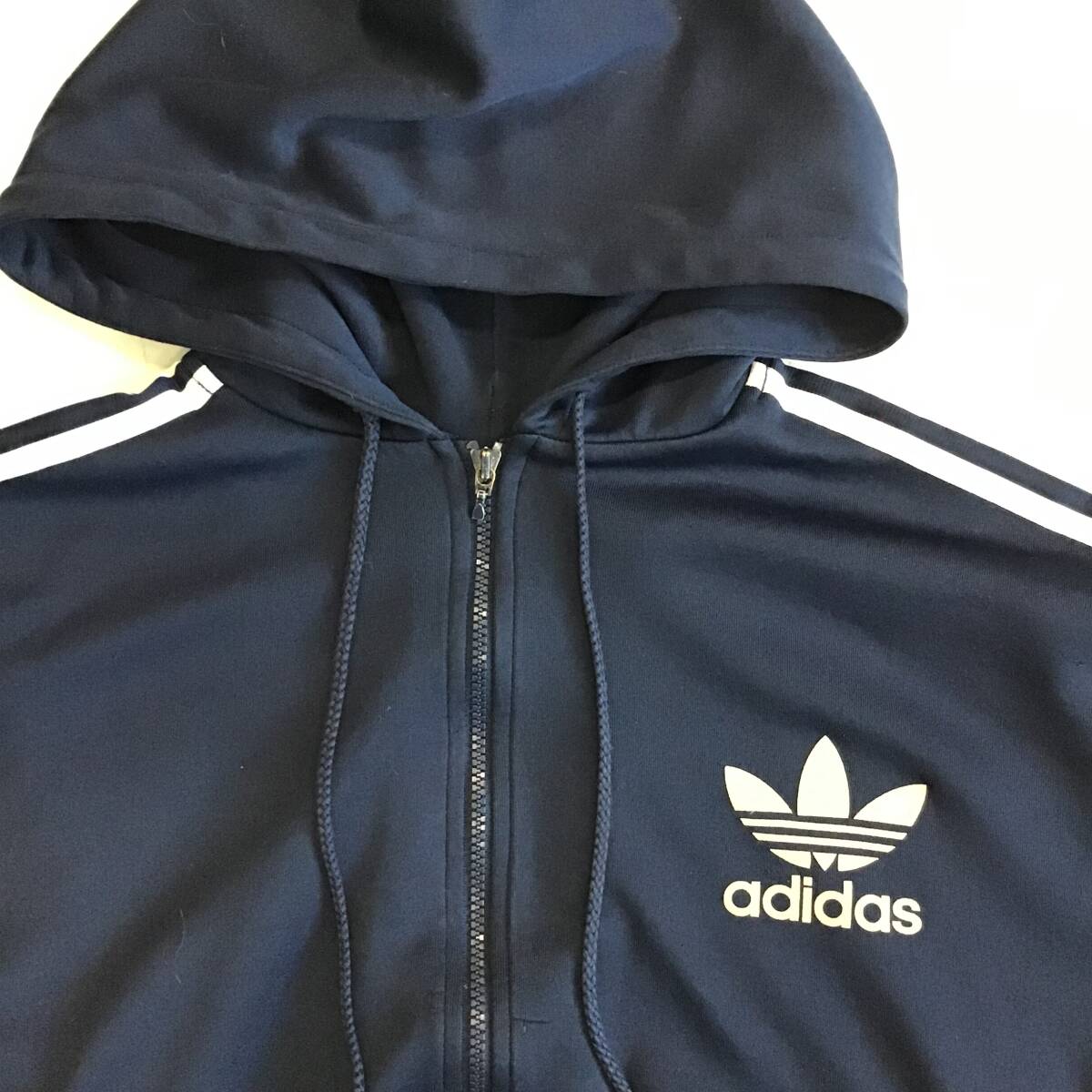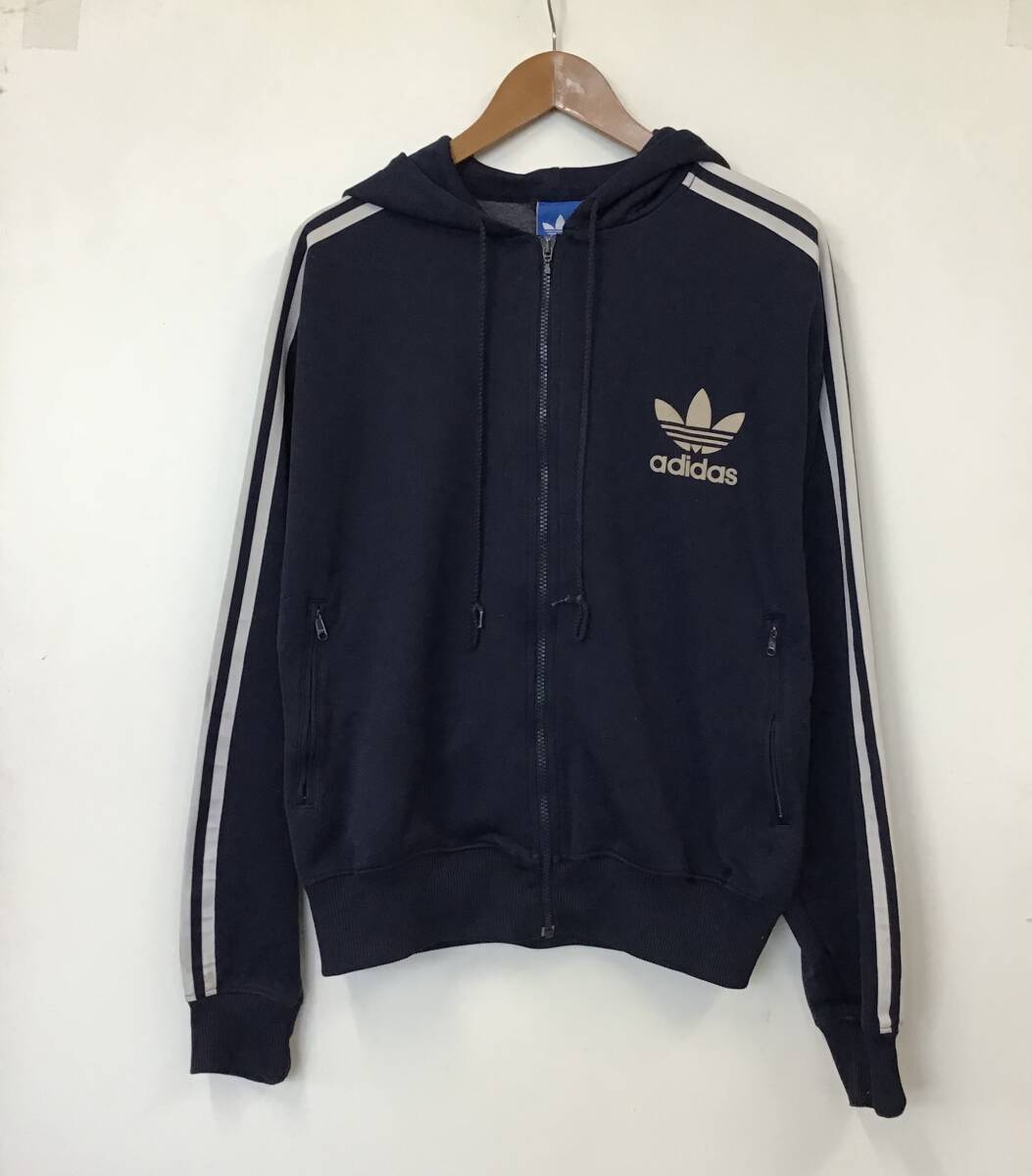 《 H 403 》adidas アディダス フード付きジャケット トレフォイルロゴ ヴィンテージ トレーニング スポーツ XL 紺 アメリカ古着 古着卸